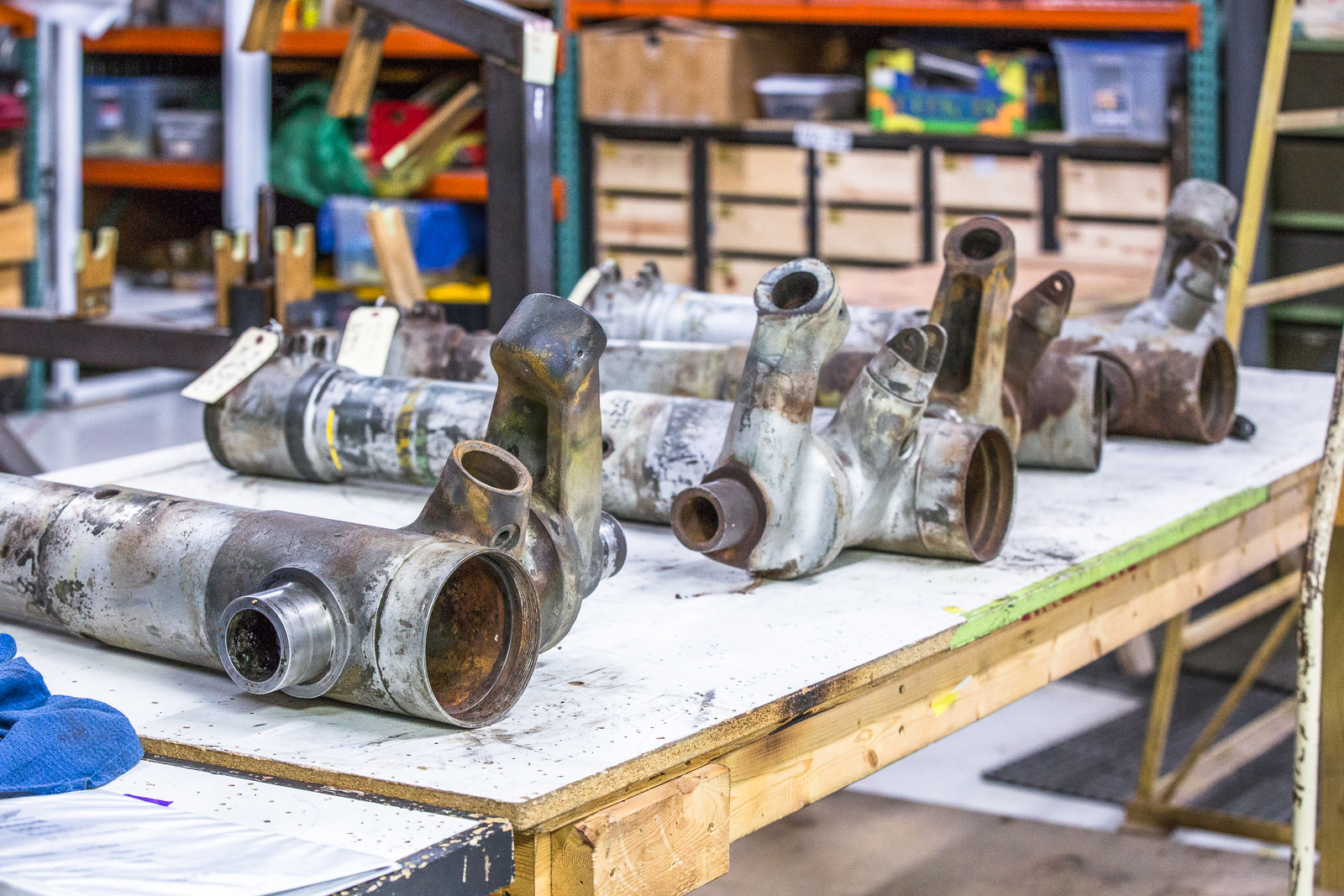Here is a closer view of some of the main gear forgings that are being inspected. (photo by John LaTourelle)