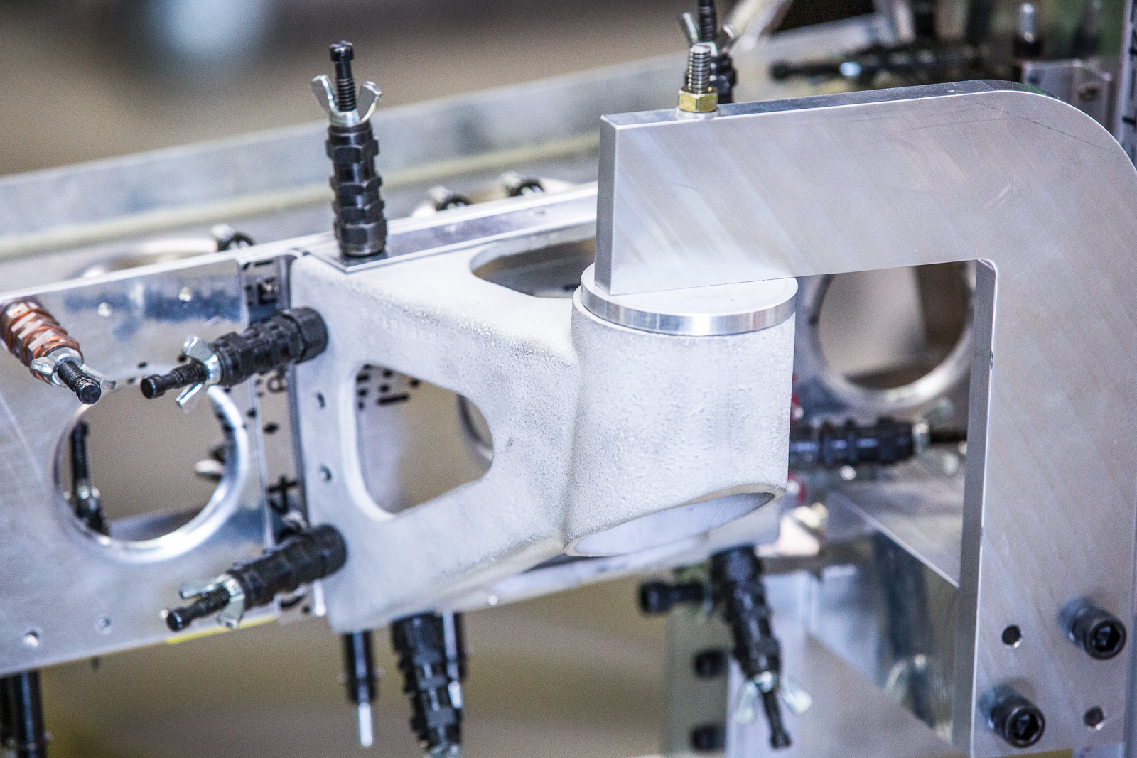 The natural aluminum finished assembly is the elevator lever mount. (photo by John LaTourelle)
