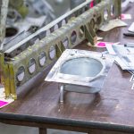 This month work continued on the tank bay and pilot floor areas we reported on in last month’s update. They are complicated and time-consuming parts of the P-47 fuselage, in large part because of the multiple corrugated parts that must be formed.