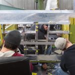 Kris works with a corrugated part, using a finger brake to form an edge flange. (photo by John LaTourelle)A closer shot allows us to see part clearly. (photo by John LaTourelle)This assembly will be the front auxiliary tank compartment panel. (photo by John LaTourelle)In this CAD rendering, we can see that particular panel as the lowest corrugated part in the drawing.