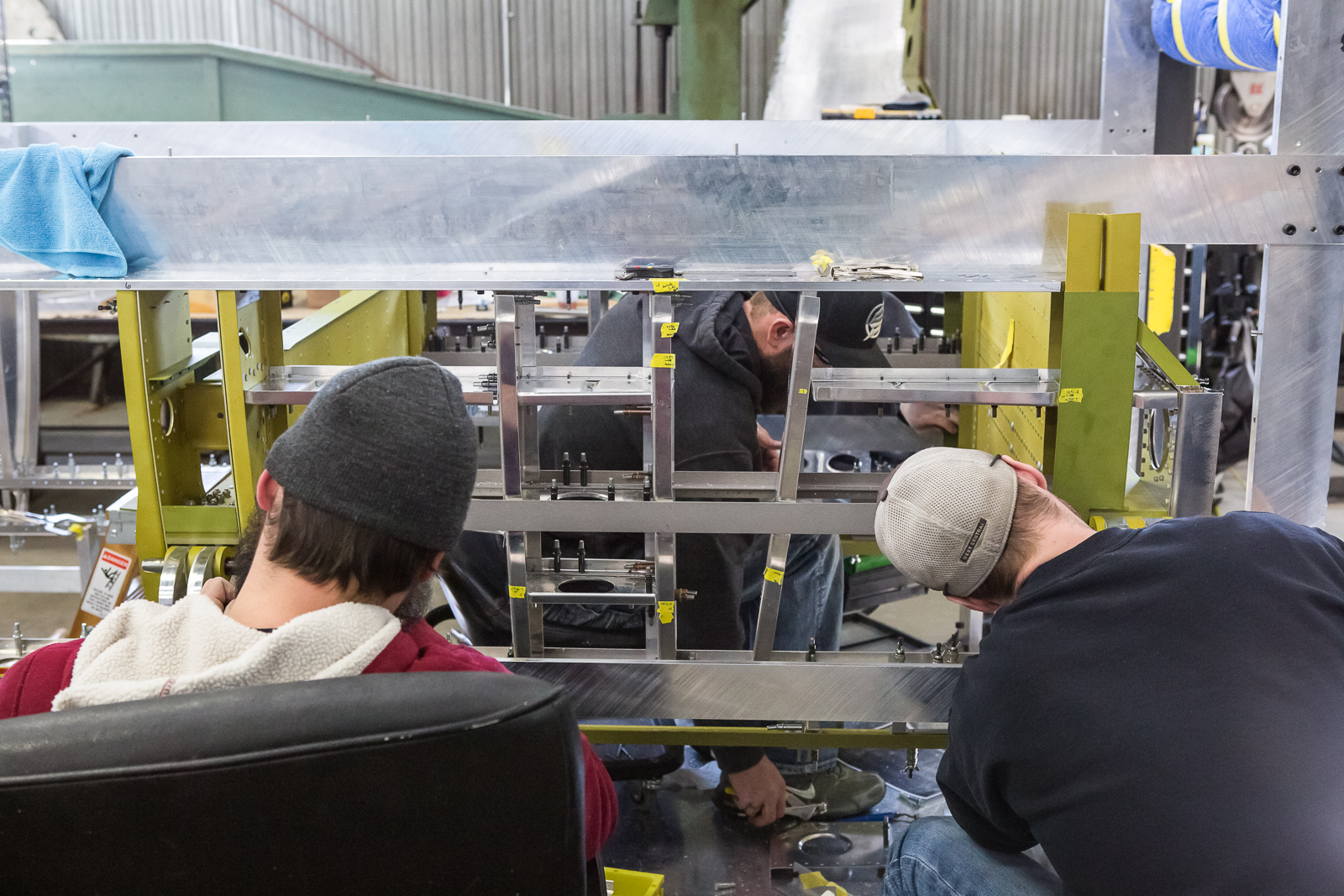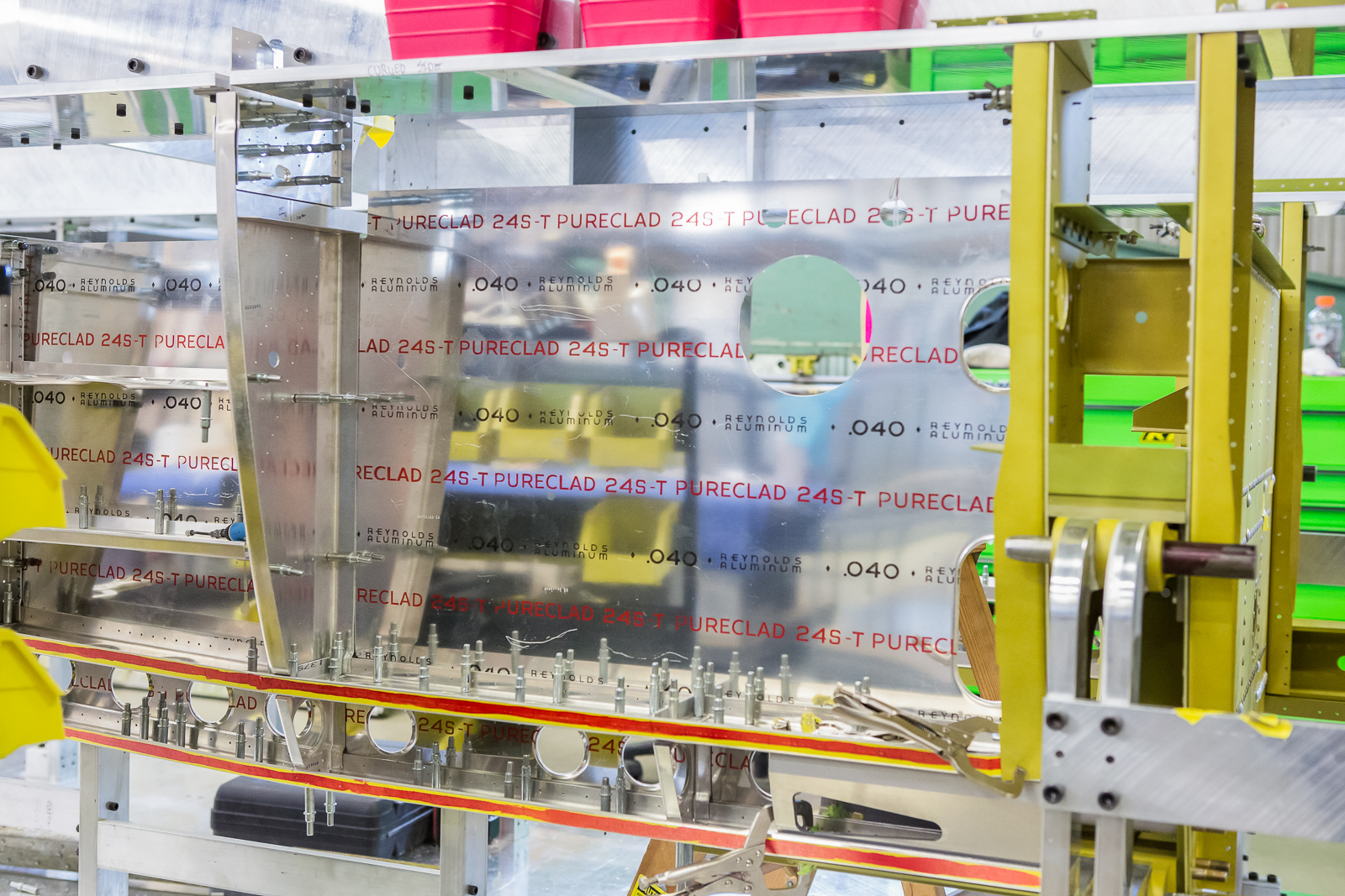 The assembly pictured in the last photo isn’t quite complete; it still needs some stiffeners riveted to it, which explains why it looks a little different in the CAD drawing.
