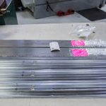 Kris continues to make corrugated parts – these are pieces that will become the top auxiliary tank panels. (photo by John LaTourelle)Greater detail is visible with this close up of the sections of the top auxiliary space panels. (photo by John LaTourelle)