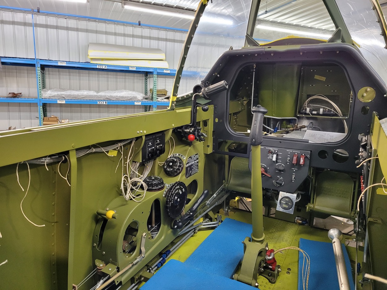 Work on components for the cockpit has progressed nicely since the last update. Some firewall-forward engine accessories were also installed. The air scoop area is under preparation and the radiator is now installed; several related skin sections were also trimmed and fitted into place.