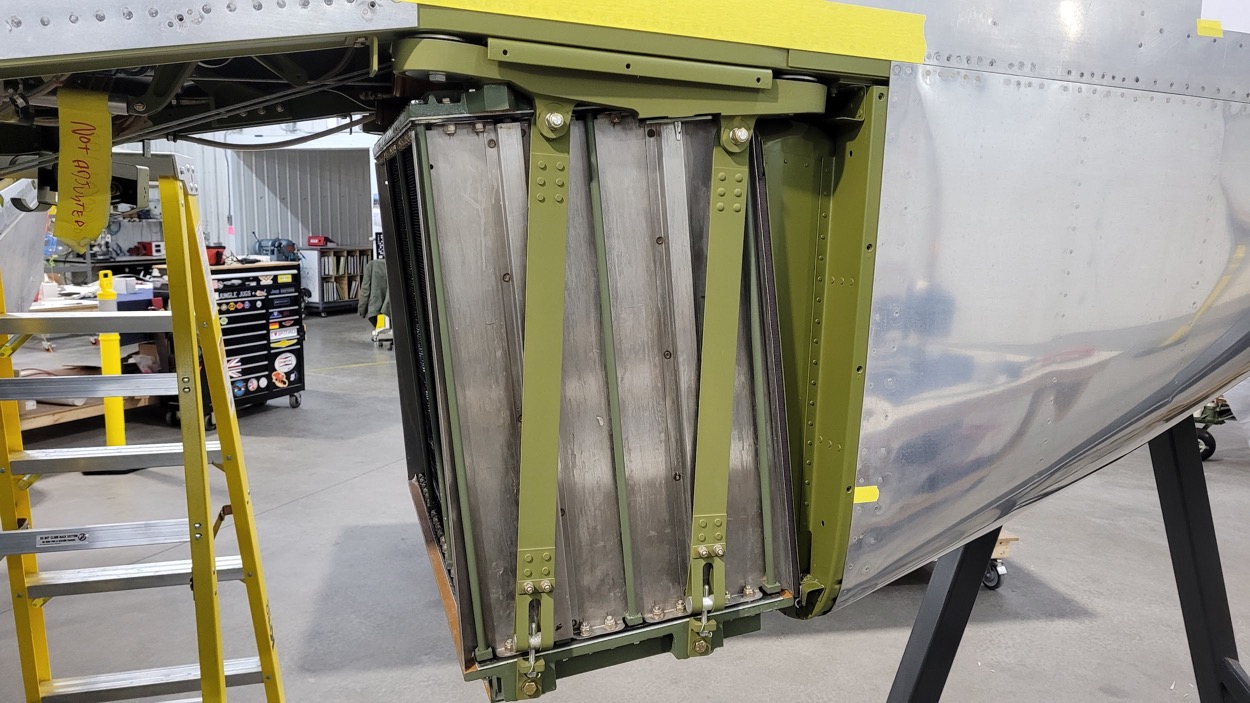 The radiator mounting straps hang ready for when the radiator is mounted. (image via AirCorps Aviation)