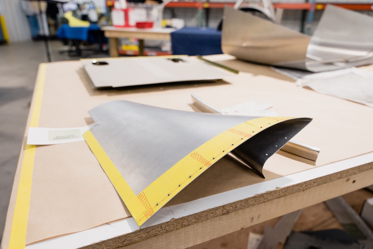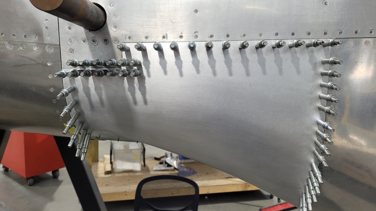 Clecoes are installed to hold the skin section from the previous
