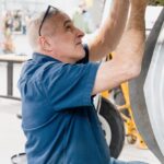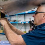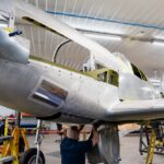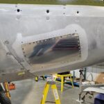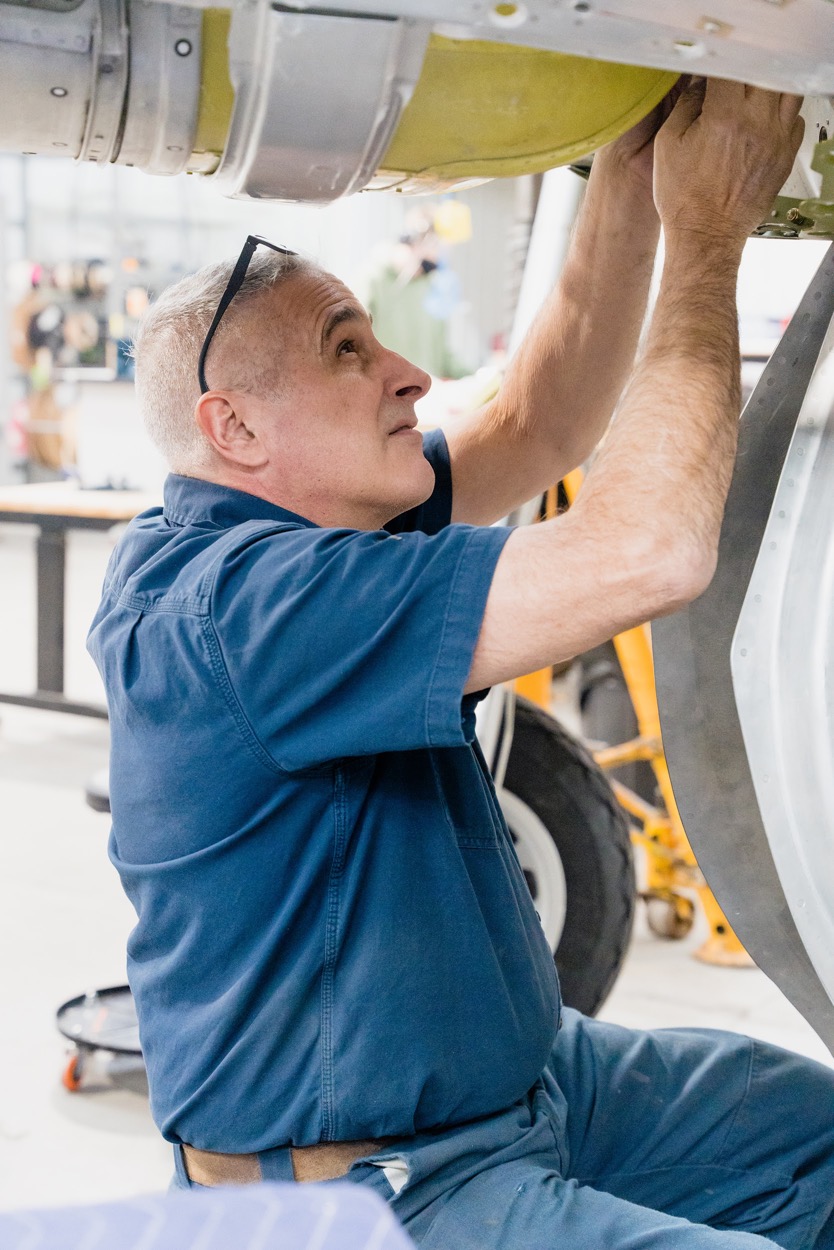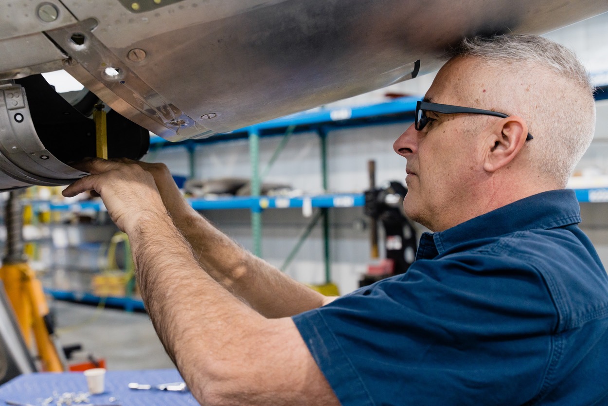 Mark works on a gear door. (image via AirCorps Aviation)