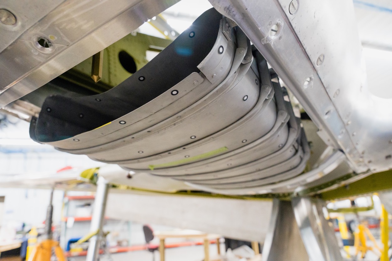 The skin covering the upper landing gear is riveted in place. (image via AirCorps Aviation)