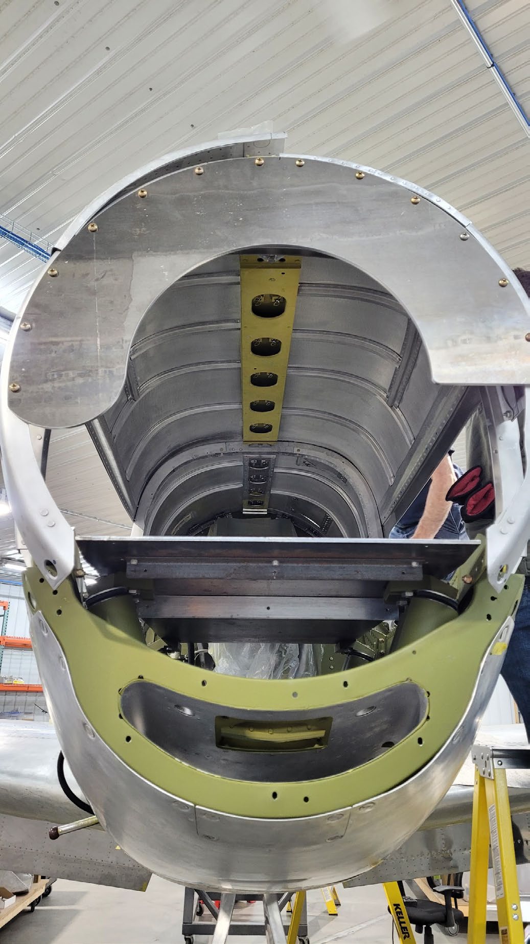 Fitting work is progressing in this view of the inside upper cowling. (image via AirCorps Aviation)