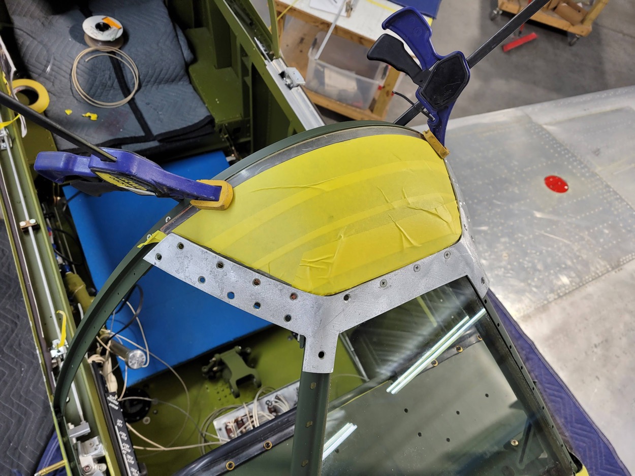 The top windshield section is set in place to determine where trimming is necessary. (image via AirCorps Aviation)
