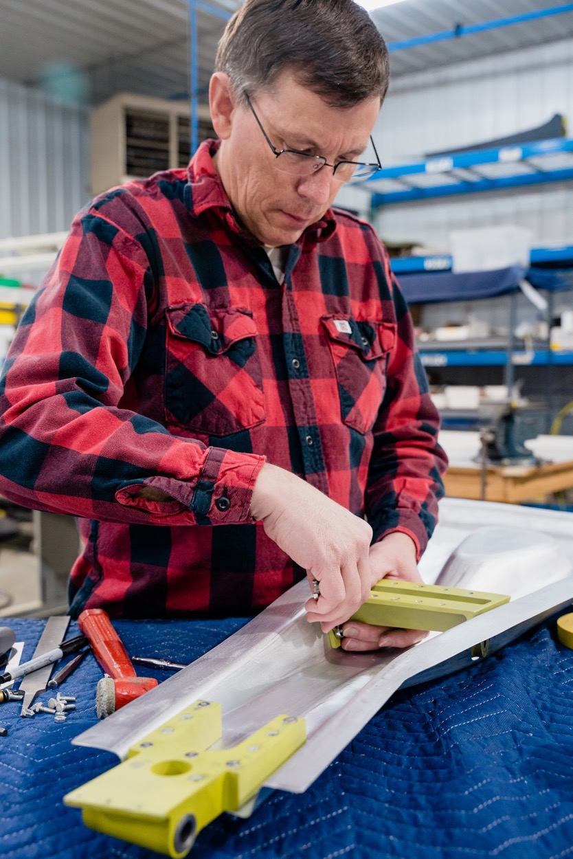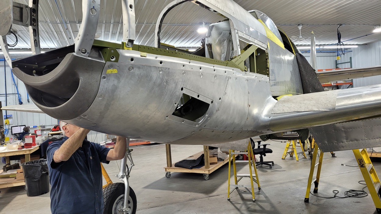 Mike works on fitting another cowl skin panel. (image via AirCorps Aviation)
