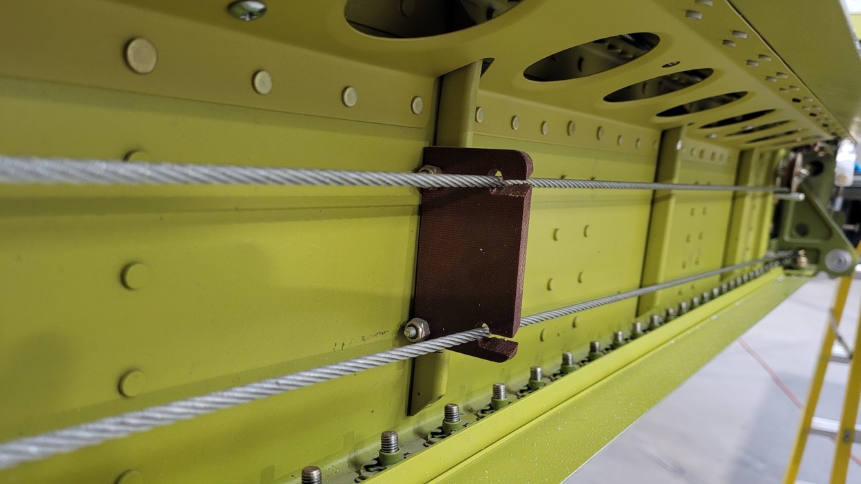 Aileron control cables run through a phenolic guide. (image via AirCorps Aviation)