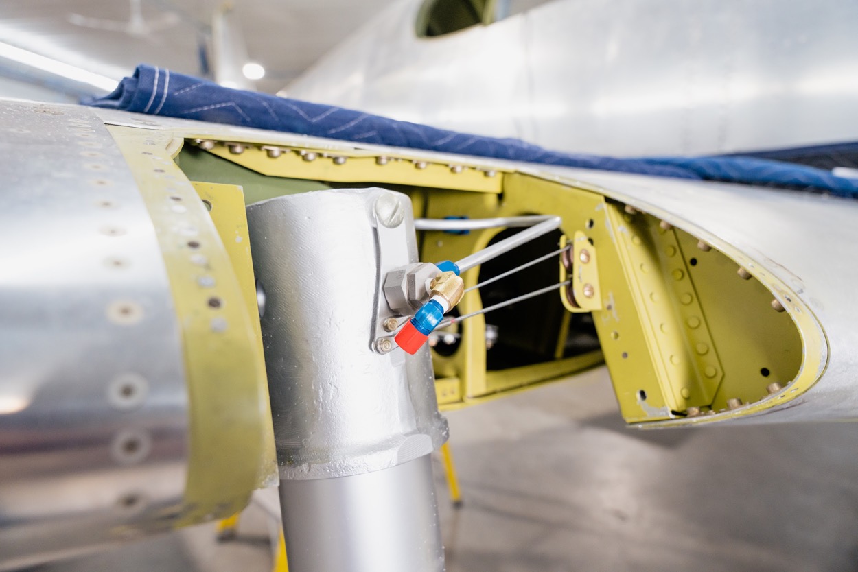 Thunderbird’s wings have a few differences to those of a stock military Mustang, most notably in their lack of armament bays and gun ports.