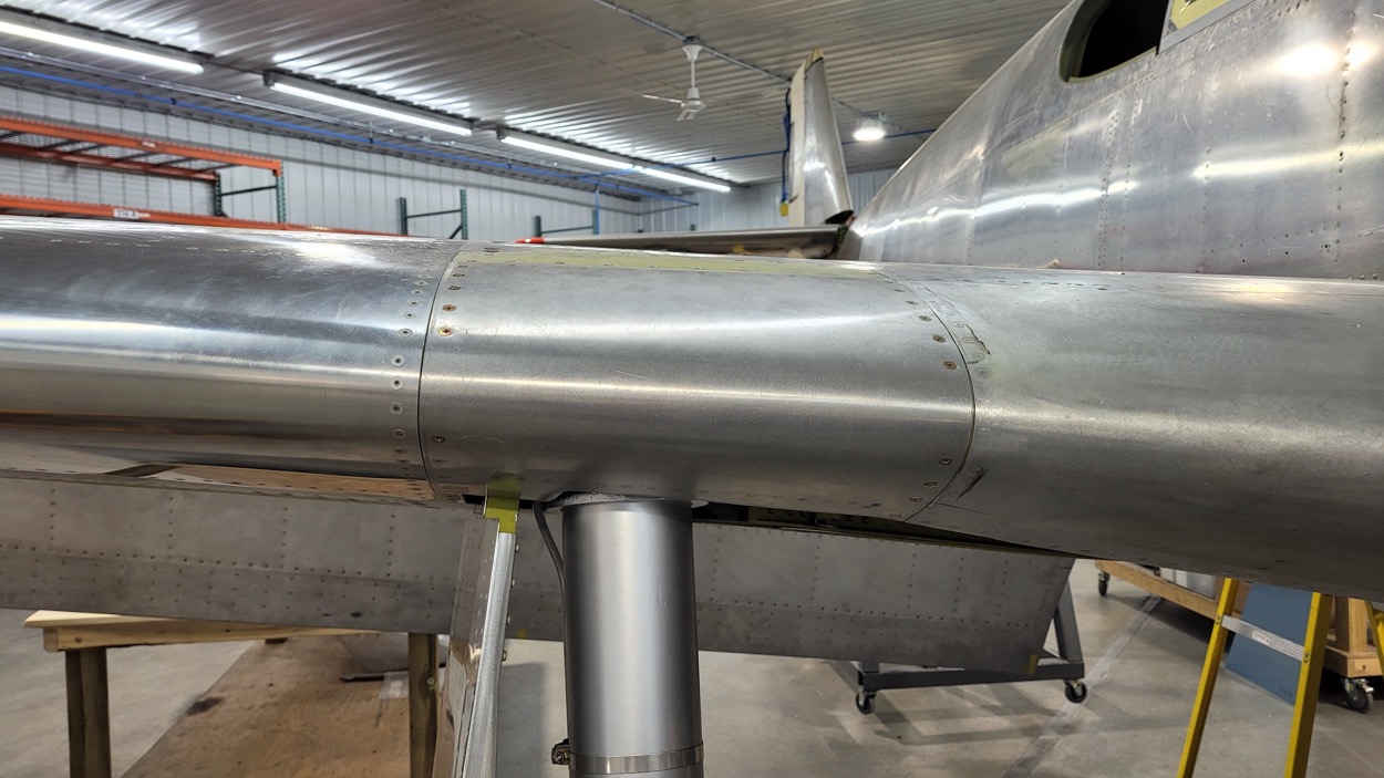 The clecoes have been replaced by permanent rivets. (image via AirCorps Aviation)