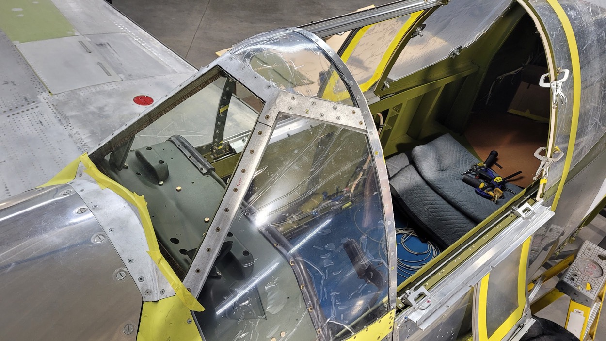 Aaron has also been working on the side windows for the cockpit enclosure. (image via AirCorps Aviation)