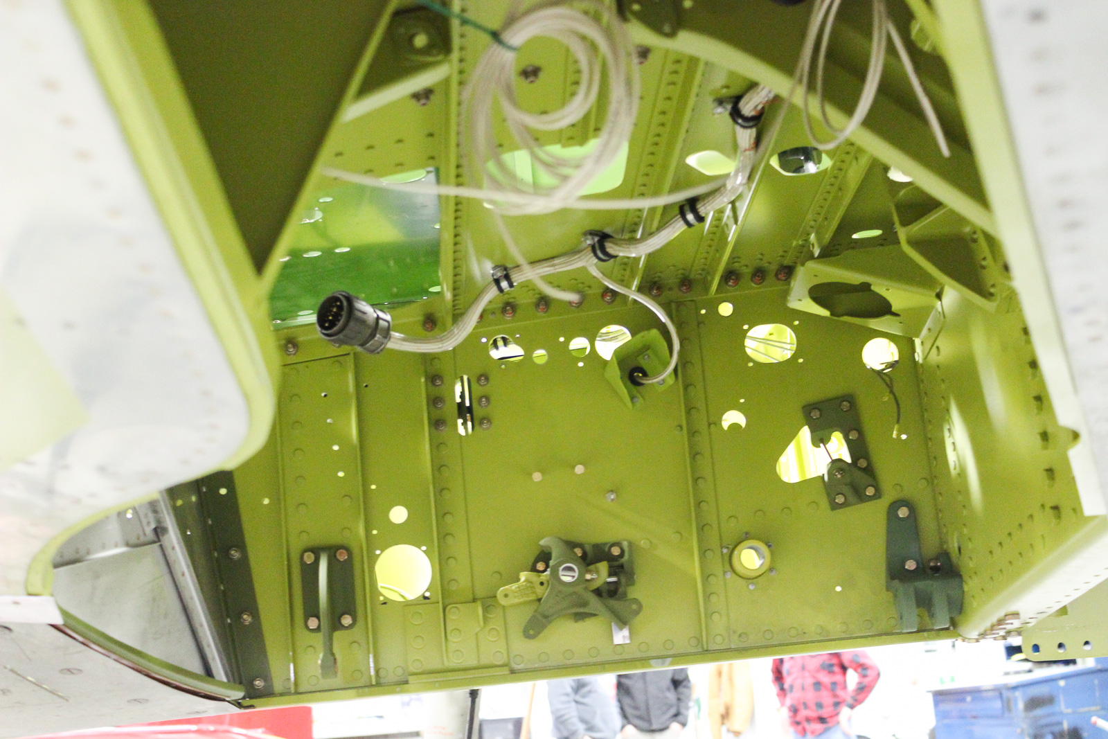 Mustang enthusiasts will notice that the wing and some of the lower engine cowling chosen for this project come from a P-51D and don’t match the C-model fuselage. Ultimately, it was Warren’s choice to use the D-model wing, and this meant changing the lower cowl from the three-piece B/C model to the one piece D-model skin, due to the increased cant of that variant’s wing. The landing light position also moved from the wing leading edge to a location inside the landing gear well to produce less drag with the gear retracted.