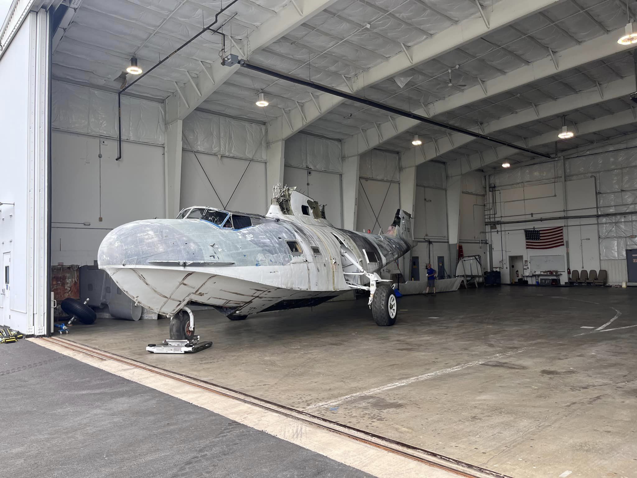 The aircraft’s center section, consisting essentially of the pylon on which the wings rest and the middle part of the wings from the center of the aircraft out to the engine nacelles, had significant corrosion and was judged to be nearly unsalvageable. As a result, it was traded for a potentially airworthy section with the Collings Foundation of Stow, Massachusetts. The center section was promptly dispatched for restoration to Charles “Tuna” Hainline in Houston, Texas. Through the winter of 2022-2023, the team made progress sorting through the huge cache of PBY parts at the hangar in New York, with the biggest hurdle being shipping the PBY fuselage north from Florida. After months of negotiating with trucking companies and the issuing of oversize transport permits for numerous states, the flying boat finally made its way out of Florida. Work on Catalina’s restoration is planned to begin this summer, with the eventual hope being the production of an airworthy (and seaworthy) aircraft that can tour and fly for extensive periods. The Catalina would be joining the small class of around 15 airworthy examples commemorating the service of this unique type.
