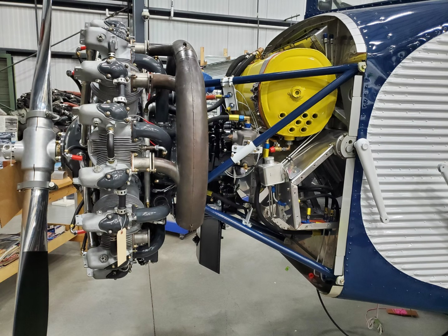 In collaboration with the Tri-Motor Heritage Foundation, restorer Jody Brausch has provided us at Vintage Aviation News with an update on the progress made to NC9684. “The wings went on without a hitch; no surprises or unexpected challenges. With the installation of the wings, NC9684 now has a horizontal stabilizer, a vertical stabilizer, and wings attached. In addition, all three engines have been installed, and we are continuing to put the finishing touches on the exhaust systems, which are expected to be completed within the next couple of weeks. Engine nacelles for engines one and three are almost finished. The electrical system is in progress, with the instrument panel finished and awaiting completion of the electrical system for final installation. The wheels and brakes are currently with Cleveland Wheels and Brakes. They are applying a new finish to these components that will match our paint scheme. We anticipate landing gear installation in early spring. Interior components are ready for installation, which will occur once the systems are fully operational. Lastly, now that the wings are in place, we can complete the fuel systems, which we anticipate will happen over the coming winter months.”