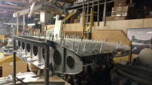 Given the scarcity of original, early-model B-17 parts, the Vintage Aviation Museum’s effort to build a B-17C will mostly involve building parts from scratch, but the restoration team already has immense experience working on B-17s, so they will be starting from a very positive position. In describing their endeavor, the museum’s founder, Sean O’Brien, recently stated: “This project originated many years ago with the Desert Rat B-17 team, Mike Kellner and Bill Stanczak, kicking around the idea of building an early model B-17. After much thought and research, it was determined that it could be done. Fast forward several years later and the time has come to kick this effort into high gear. Many of the fuselage structural parts have been made and the next step is to start the assembly. The team will start with the forward fuselage, and it is estimated that it will take them approximately 6 months to do this. Some ribs have already been fabricated, and stringer extrusions have already been purchased. The main hold up to the assembly process is the heat treatment of the parts prior to assembly. The heat treating process is where the parts are placed into a large oven, at a temperature and duration that is dictated by the aluminum alloy used, which makes the metal harder and stronger. This is essential for making the airframe flight-ready.”