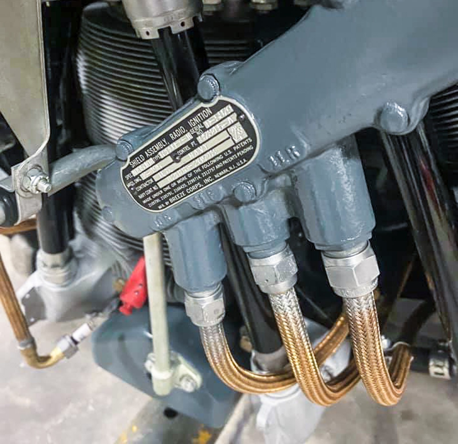 Commenting on the images of the engine above, Vultures Row also remarked: “Notice also the copper braided NOS spark plug wires and the early version primer system feed from a spider… not injected into the carb [but] rather injected into the cylinders directly. We also have a NOS [magneto] harness and have made all new placards that attach to the blower section for the clutches and other items. It’s as perfect in every aspect as it can be for an 80 year old engine.” You will note also that the unpainted fastener hardware on this engine has the early style silver-colored CAD I cadmium plated finish which was typical for the period, rather than the more-available gold-colored CAD II finish which most aviation-grade fasteners wear these days. While this may seem like an insignificant detail, it does lend the project additional authenticity, which is what Vultures Row is striving for. We feel sure that our readers will appreciate this endeavor.