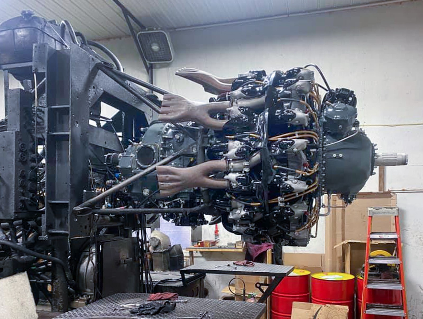The R-2800-8 on its stand at Anderson Aeromotive. (photo via Vultures Row Aviation)