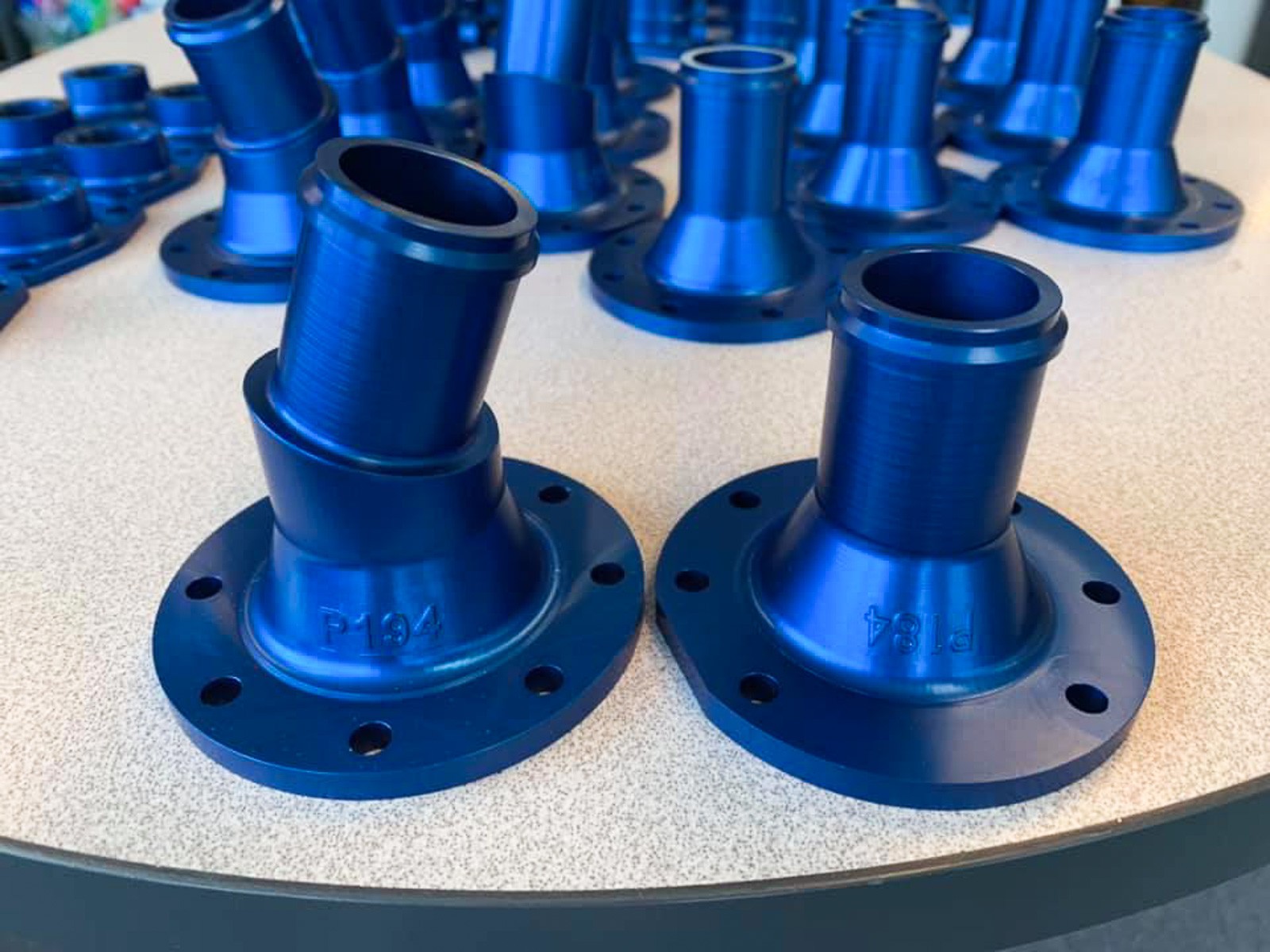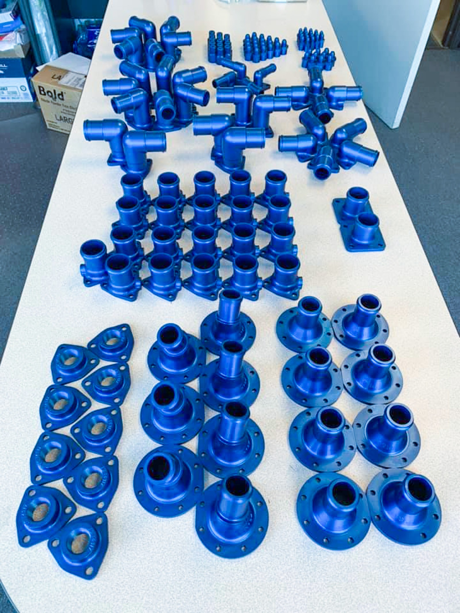 Some of the freshly anodized fittings for the airframe. (photo via Vultures Row Aviation)