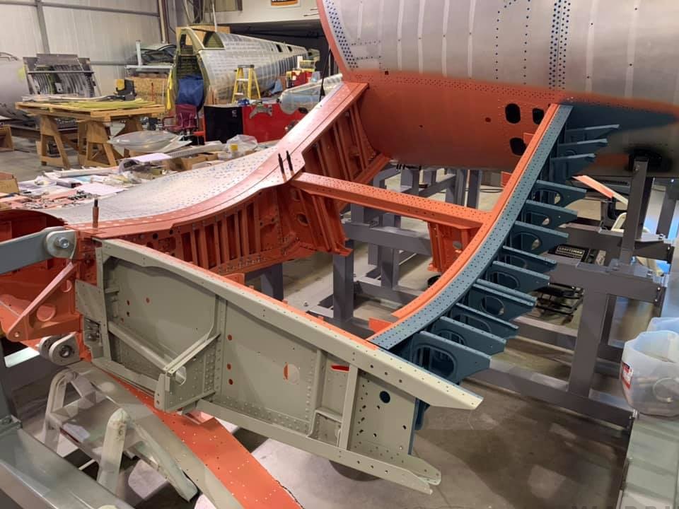 July 2021 witnessed a major milestone with the Corsair’s center section, as the team has completed the restoration/manufacture of all structural parts, and has begun final assembly. Vultures Row expects that it will take roughly two months to complete the task of permanently riveting these components in place.