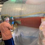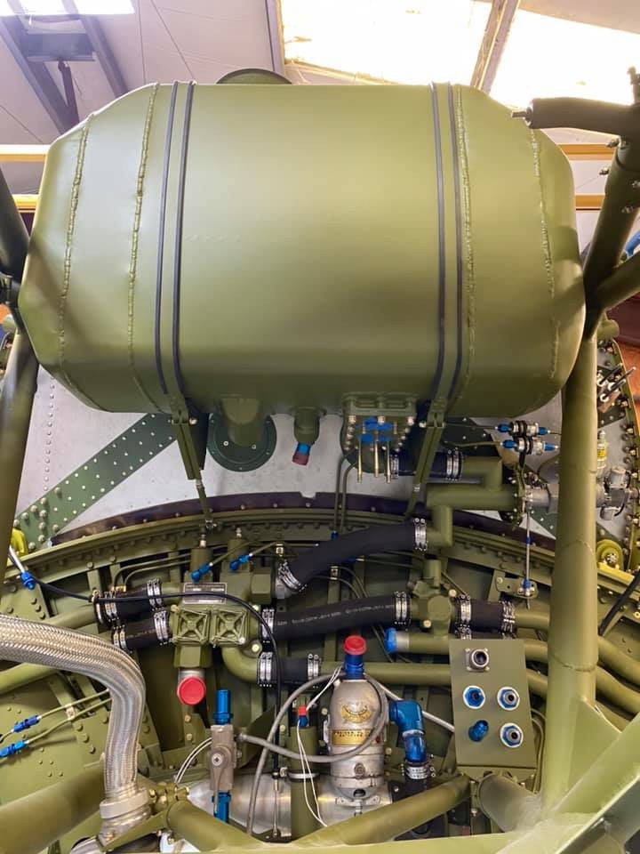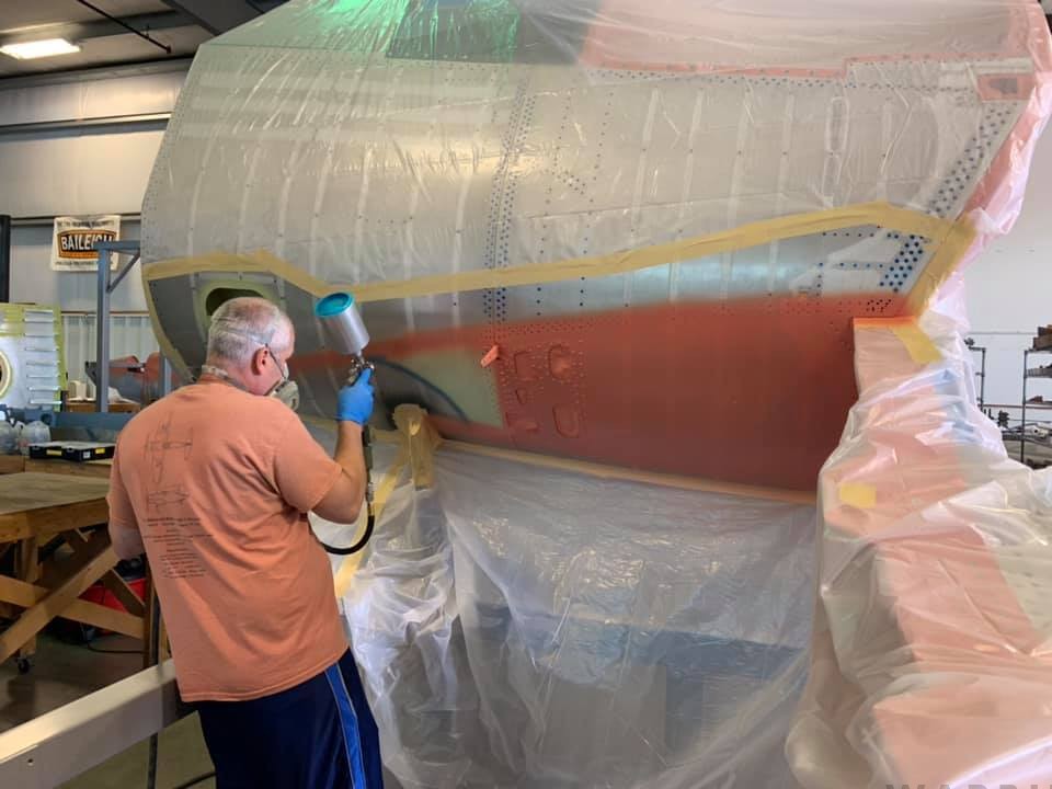 An early model Pratt & Whitney R-2800-8 (without water injection) is nearing completion at Anderson Aeromotive; it features an unusual two-speed blower clutch system which differs to the later series engines. Vultures Row has also begun forming and installing the hydraulic lines, installing newly-manufactured wing fuel tank components, restoring the early, fabric-covered flap assemblies, and forming the aft cockpit ‘scallop’ skins, unique to the ‘Birdcage’ variant. Sticking to the highest level of authenticity, the distinct salmon-colored primer, as used in early Corsair production, is present throughout. Vought created this unusual color by mixing Indian Red Pigment paste with zinc chromate to ensure each part received two coats of primer.
