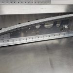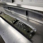 Mihalek added, “Currently we are working on finishing up the sub-assemblies that make up the B-25’s Center Section. This includes the two main left and right-hand fuselage sides. Because Sandbar Mitchell’s gear-up, forced landing caused extensive damage to these parts, all 14 fuselage formers are having to be re-manufactured in our shop. This includes countless hours drafting the parts in CAD off the original NAA drawings, re-designing the NAA forming tooling, cutting out test parts in MDF to compare to the originals, making both the tooling and aluminum blanks for the parts, press forming and then heat treating. Each rib takes about three days to make.”