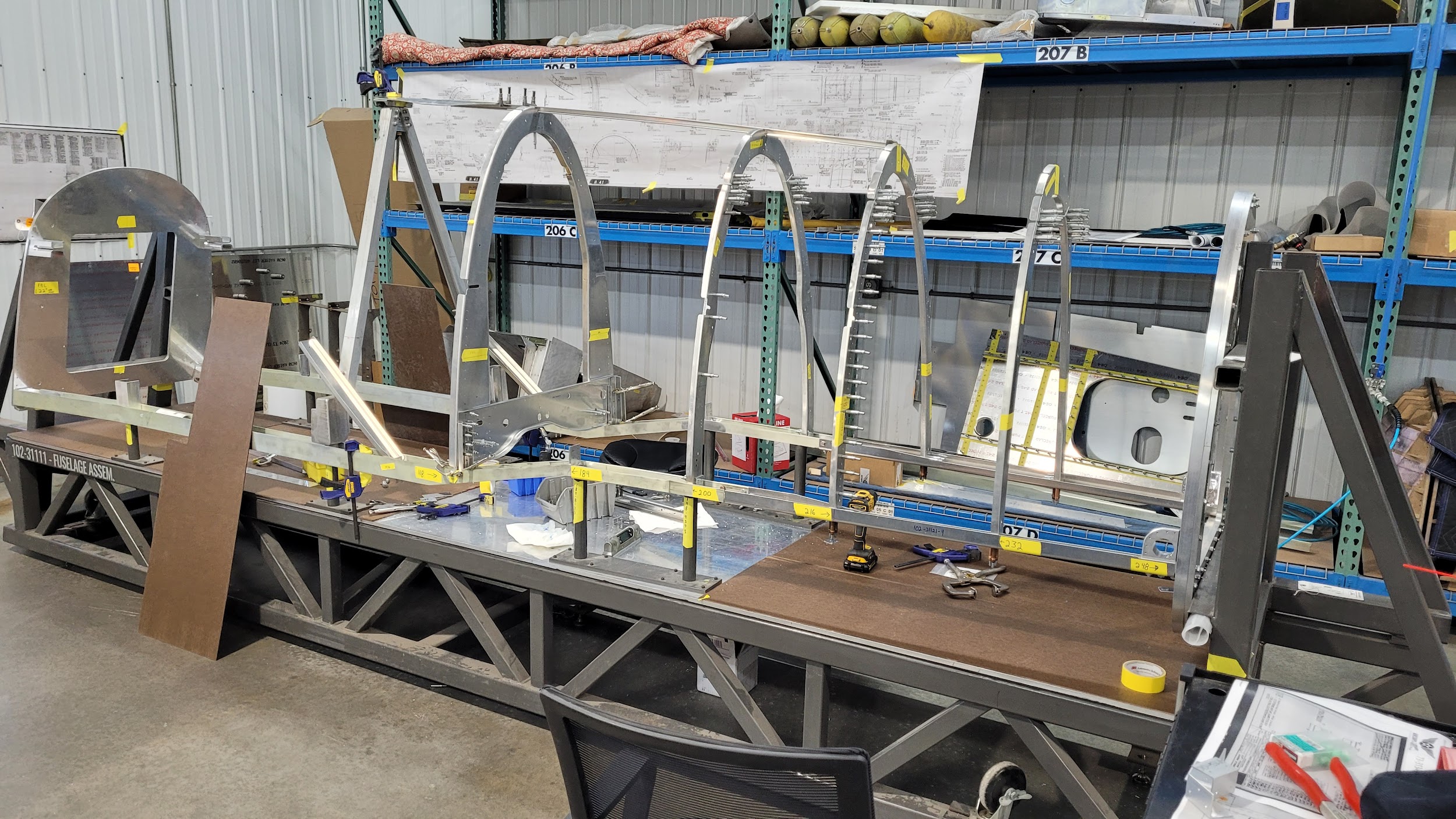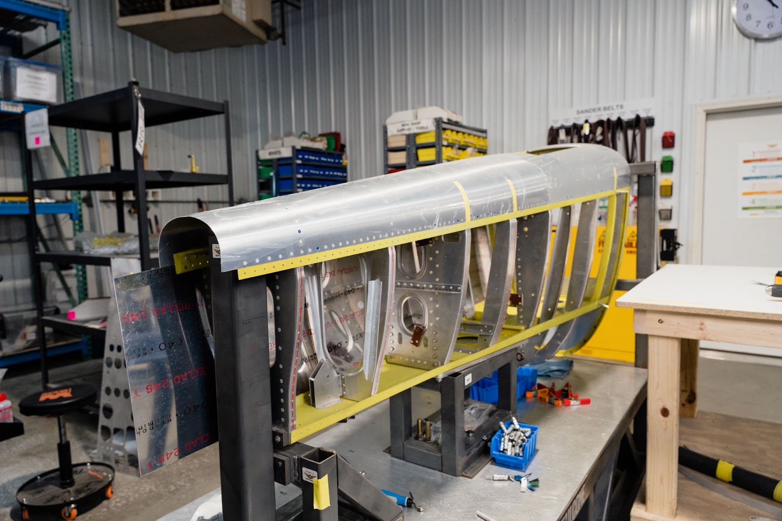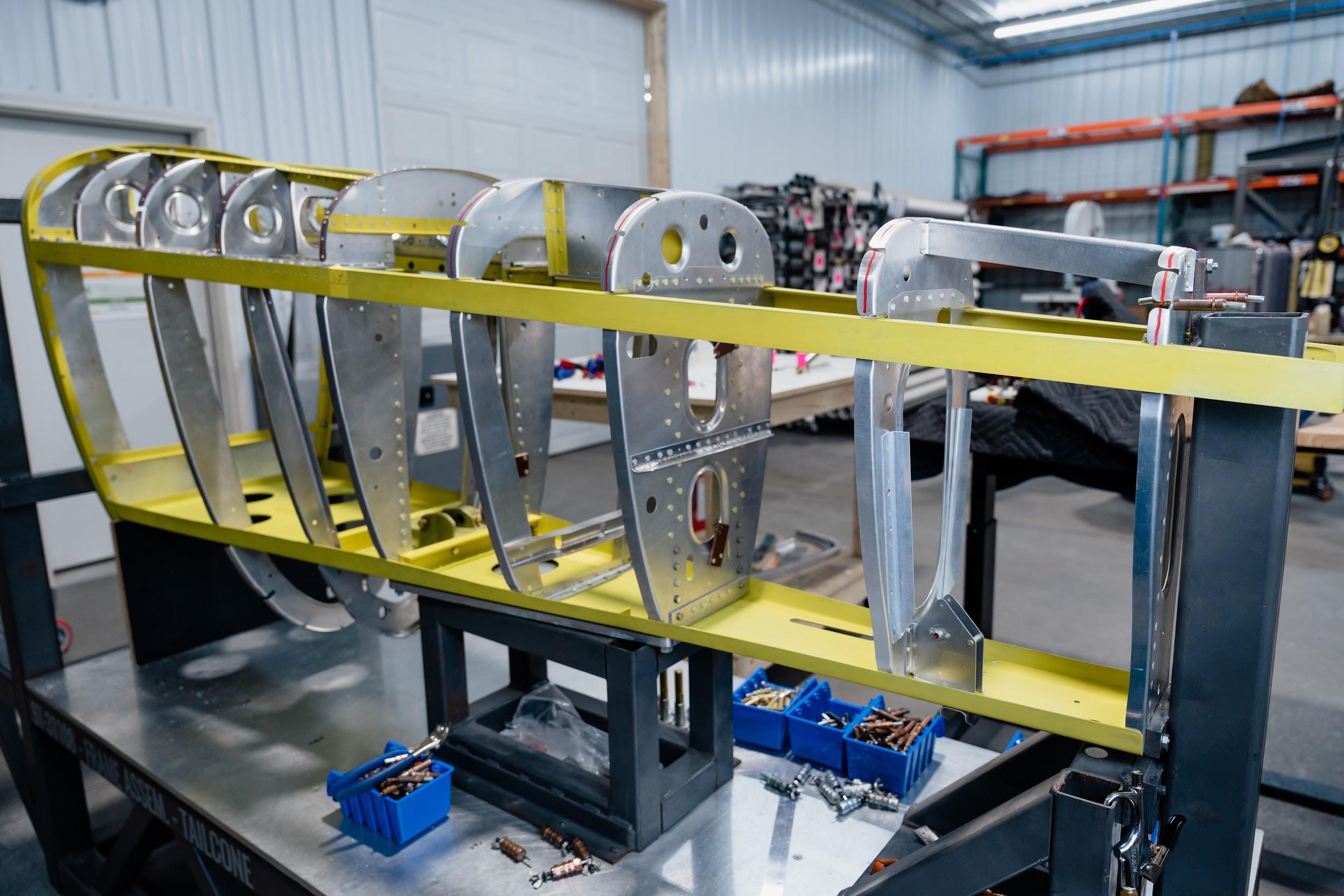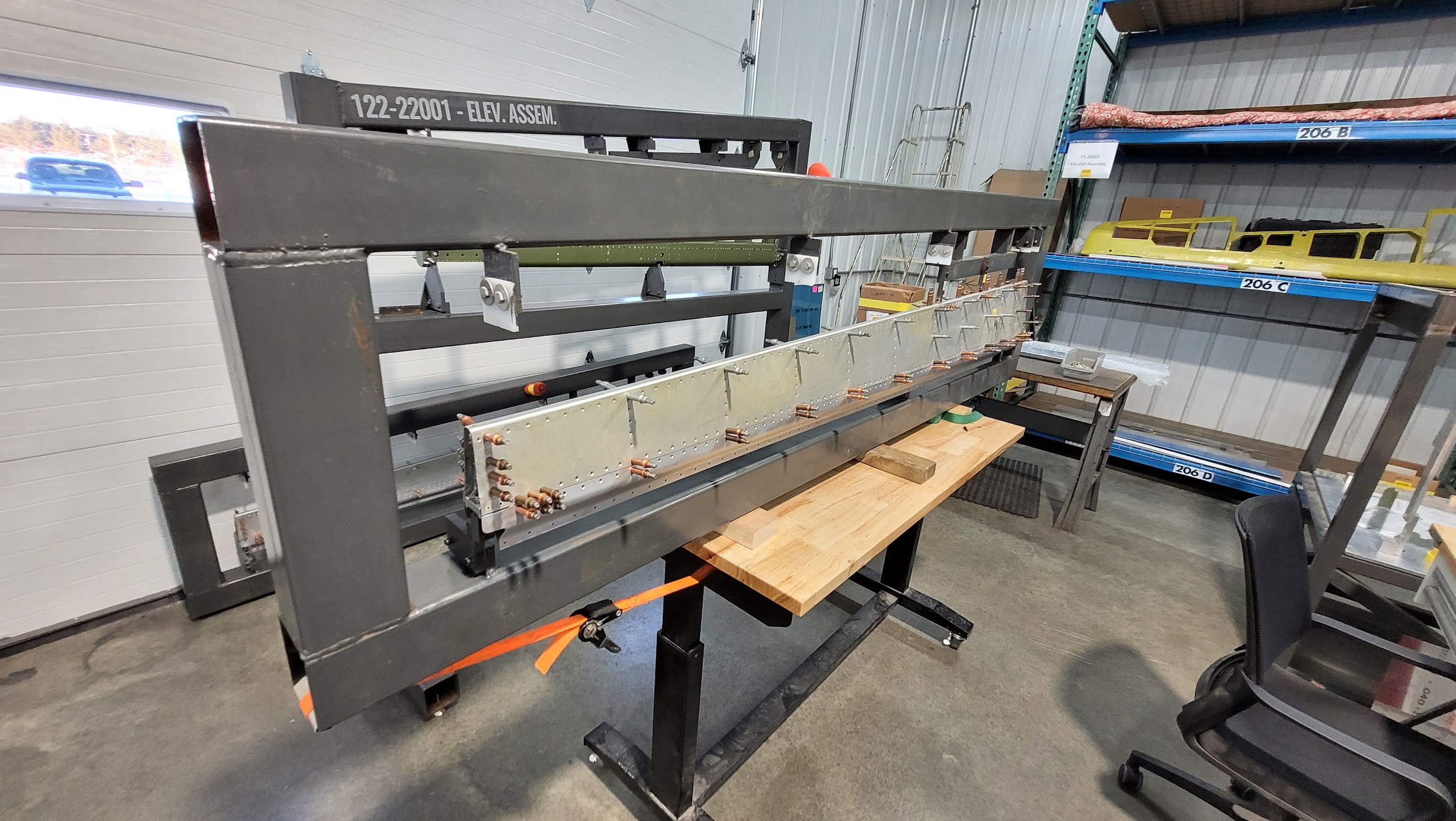 While the fuselage underwent assembly, parallel work took place for the ailerons and elevators.