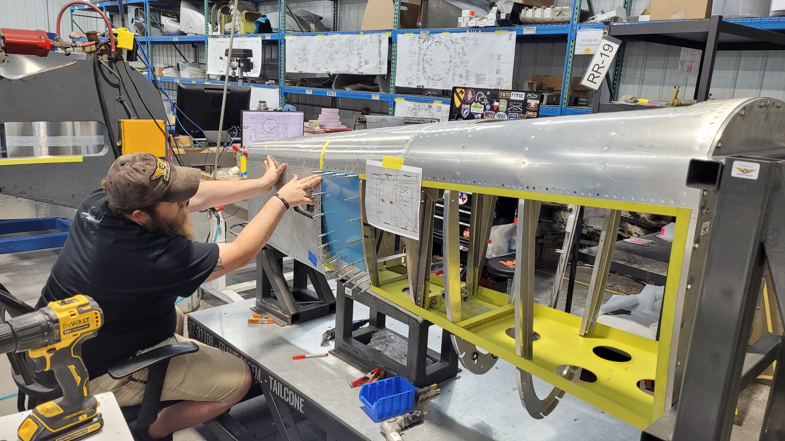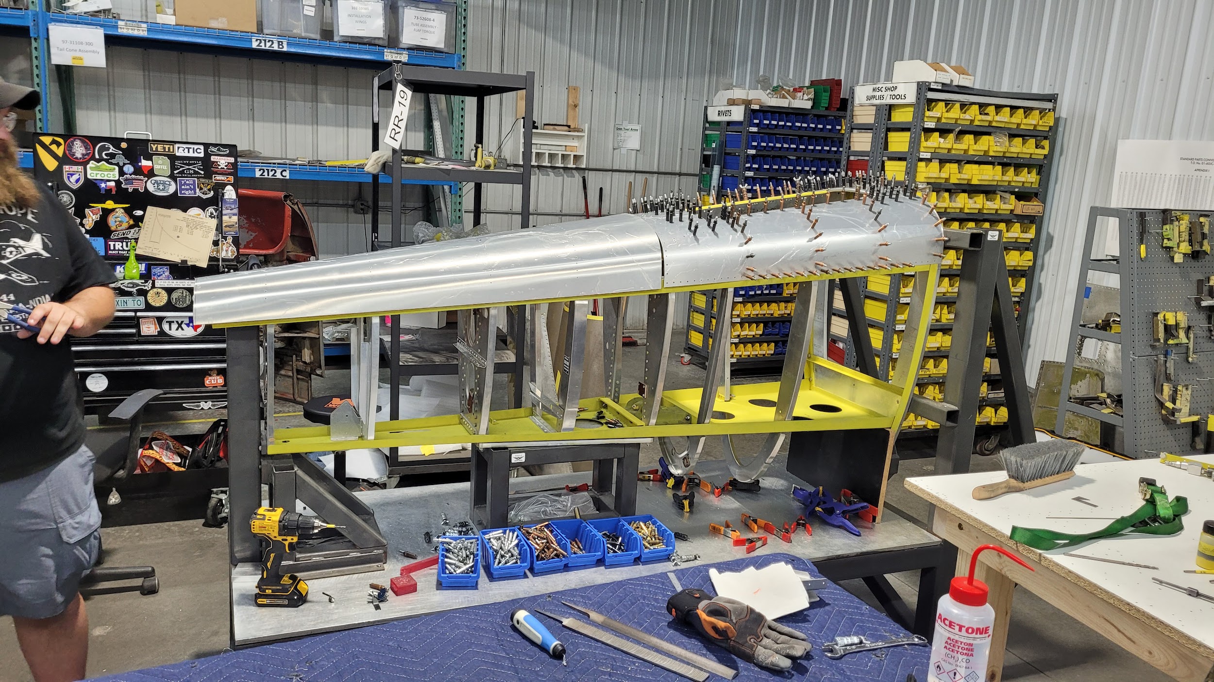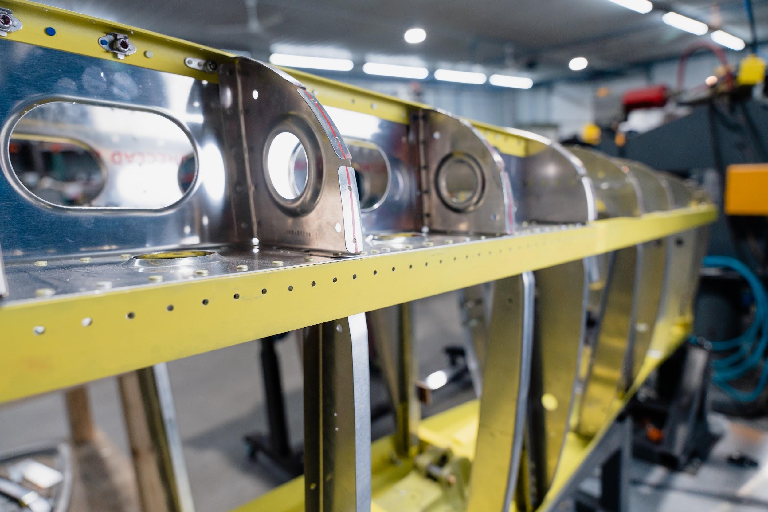 While the fuselage underwent assembly, parallel work took place for the ailerons and elevators.