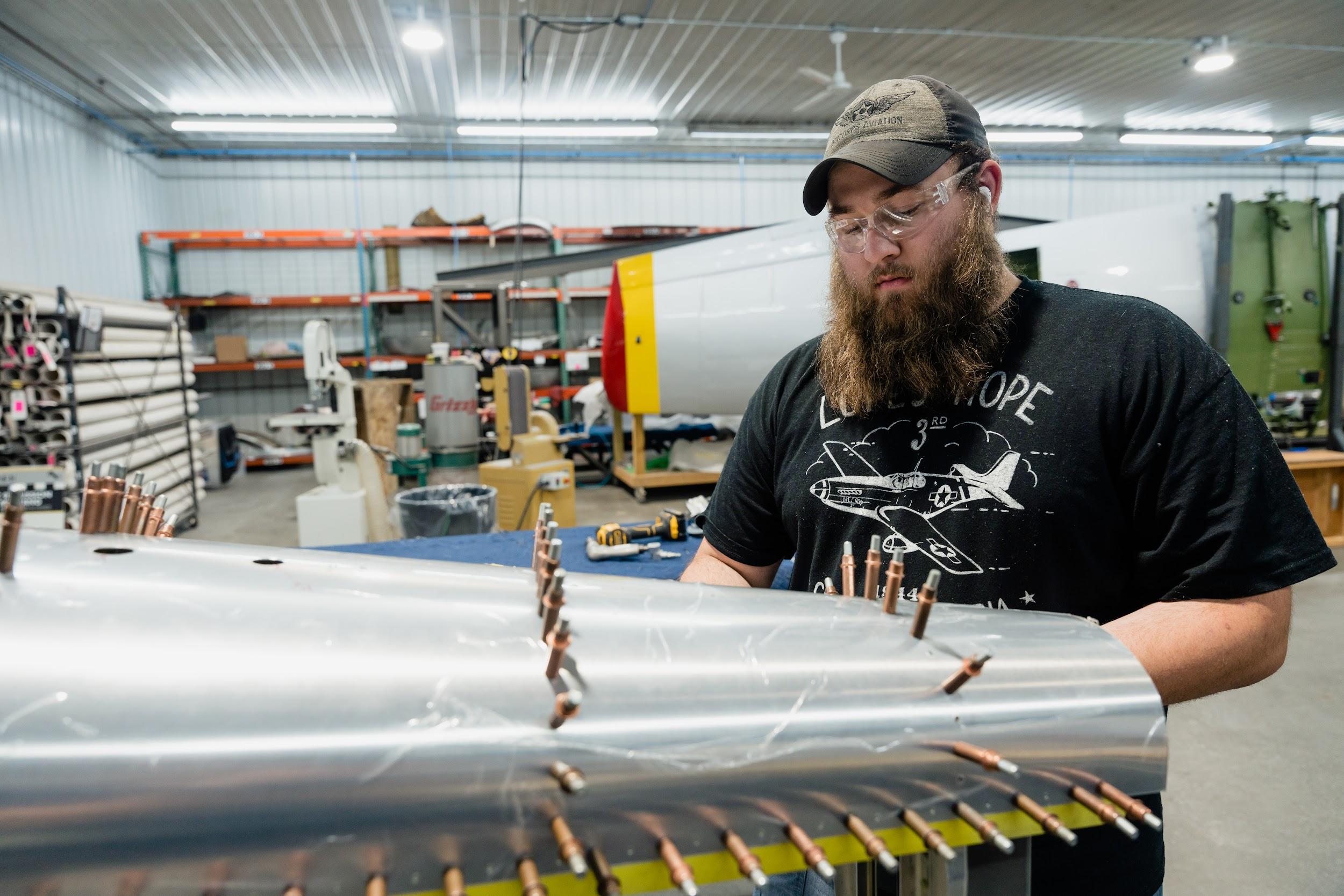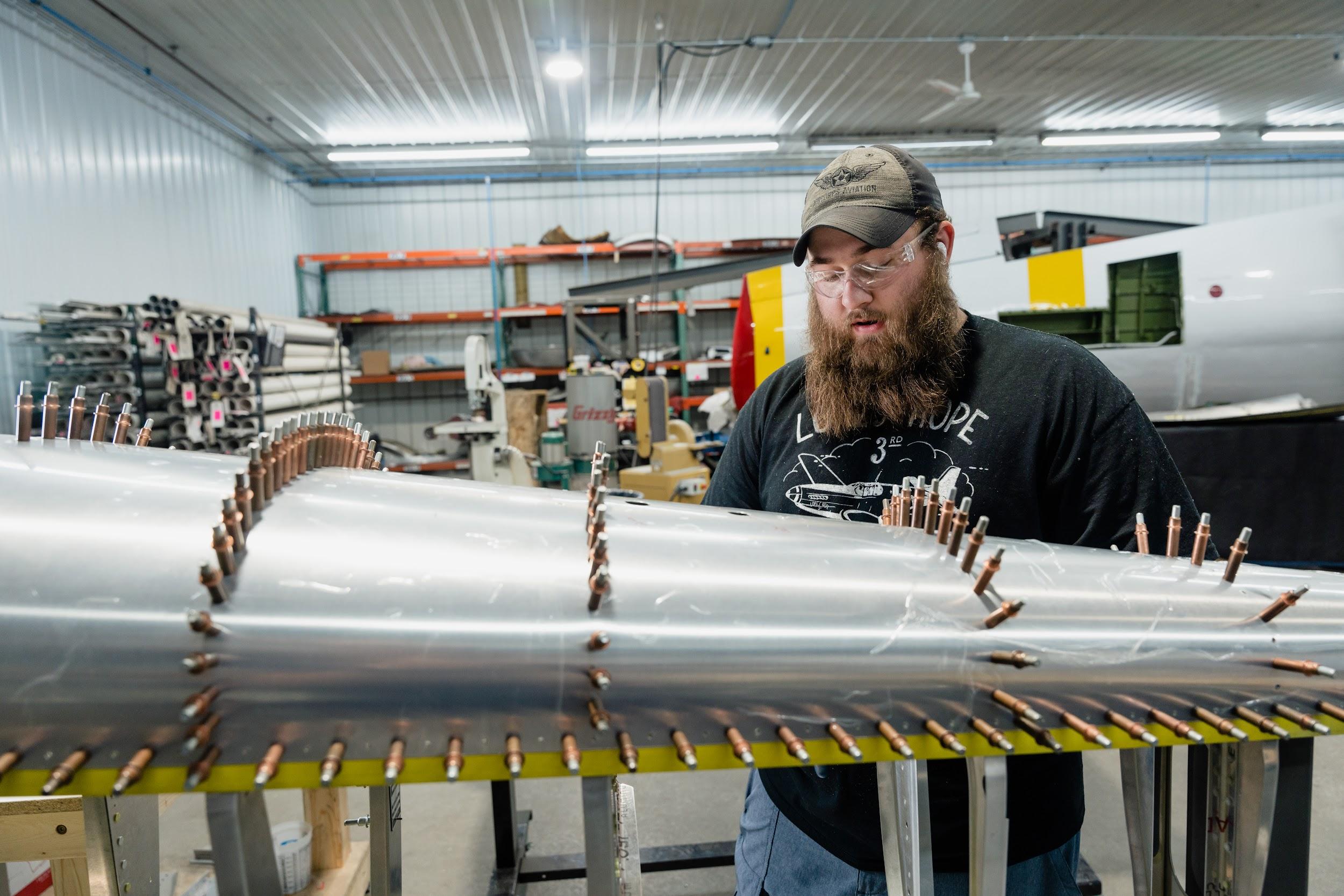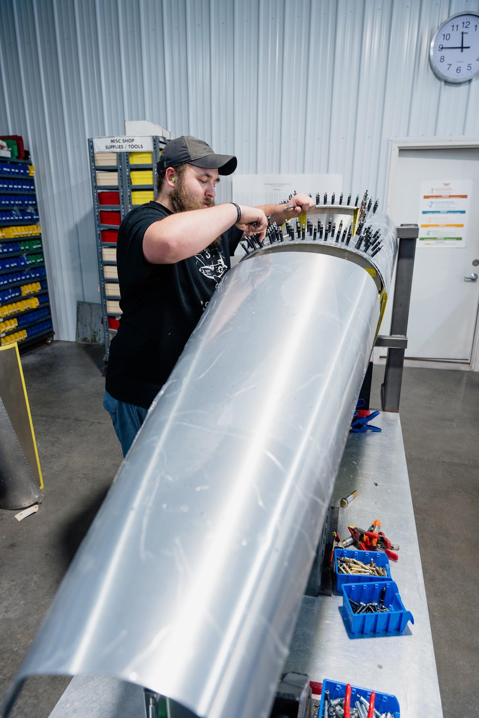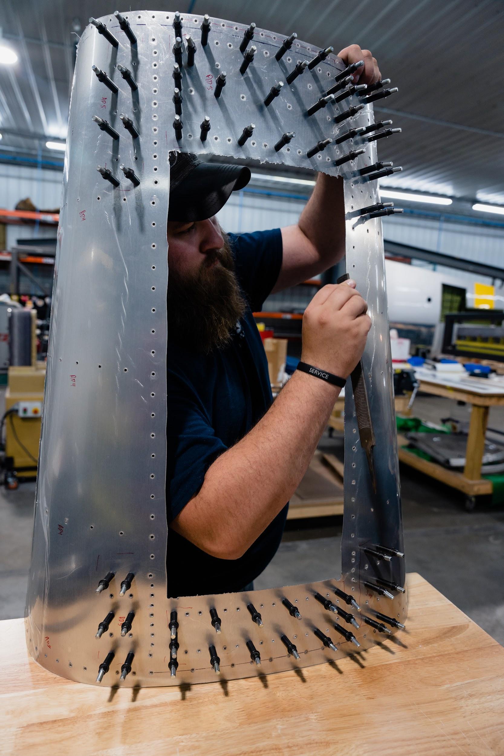 While the fuselage underwent assembly, parallel work took place for the ailerons and elevators.