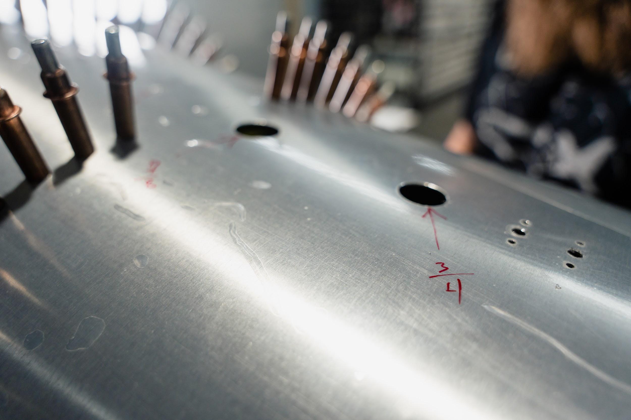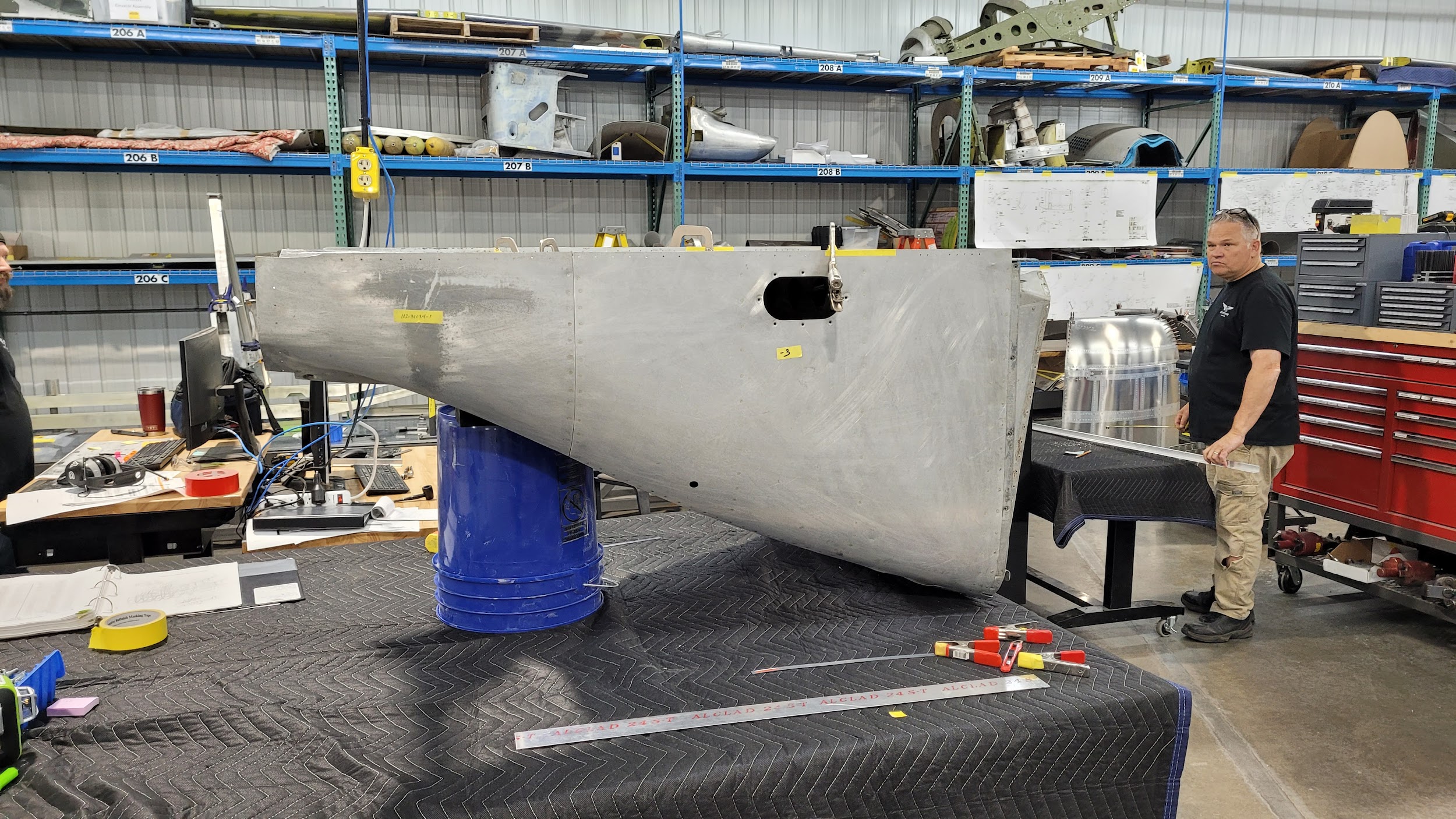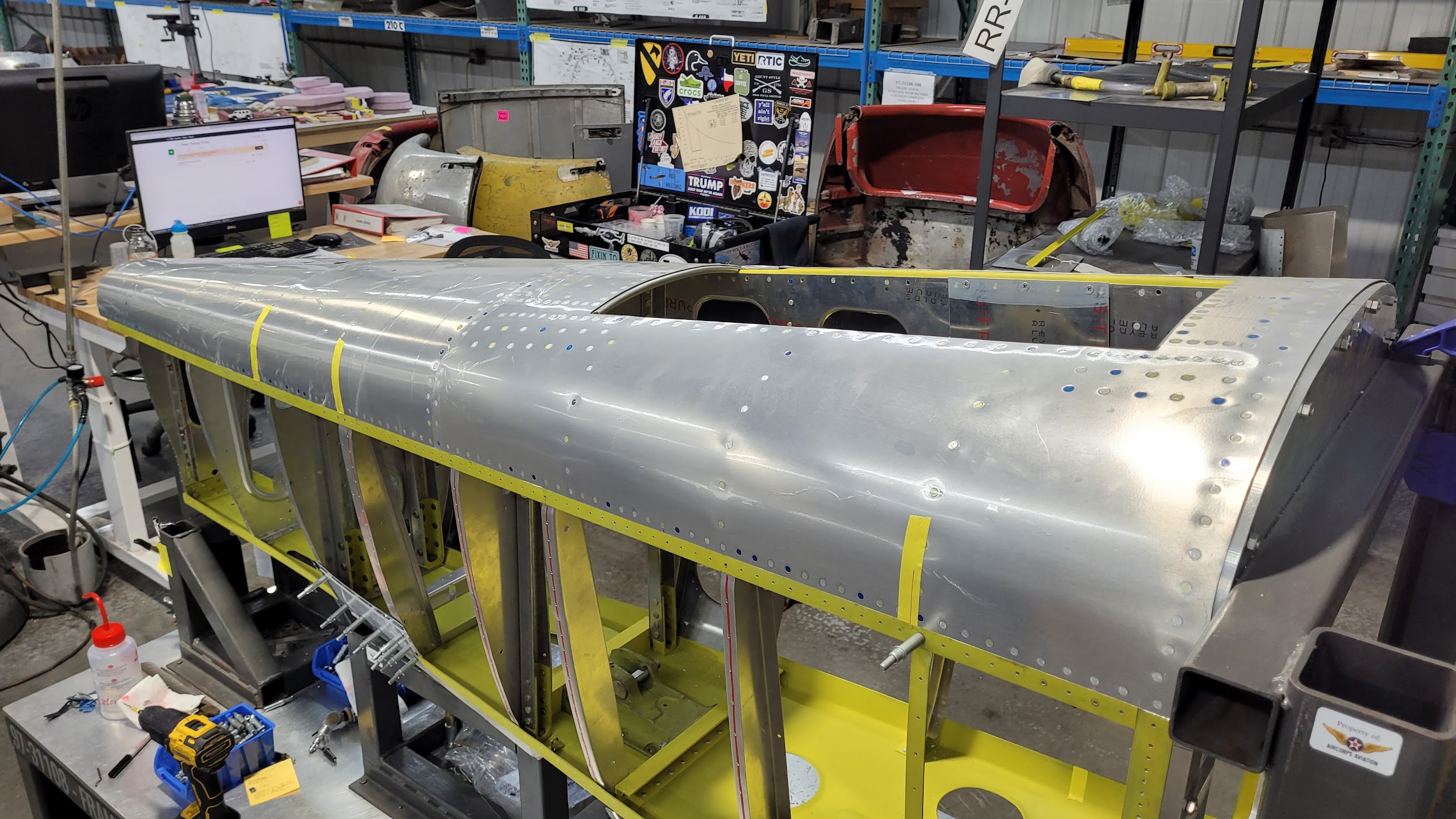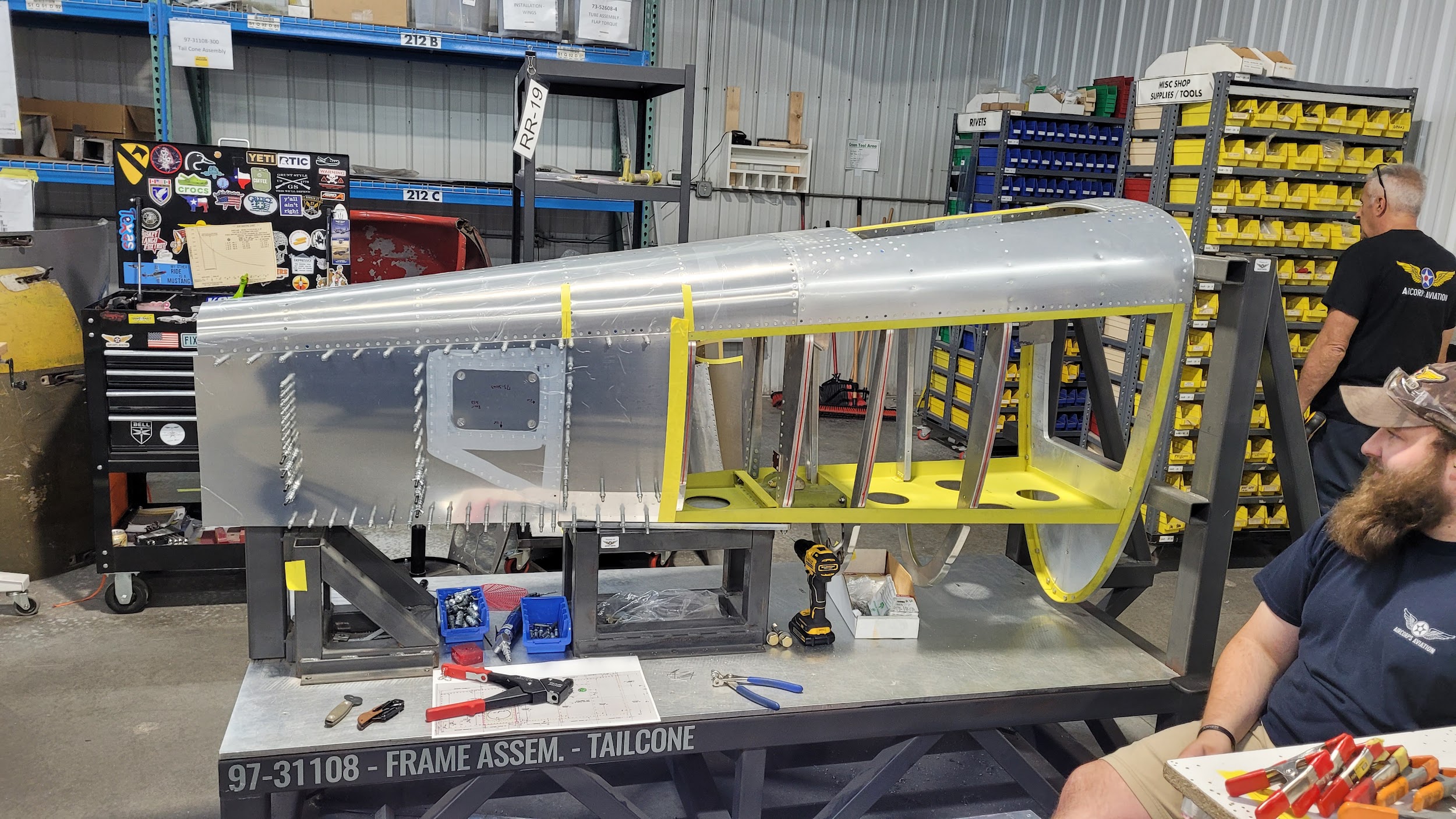 The P-51B’s tail cone was the first of three major fuselage sections to undergo assembly. While much of this structure is newly fabricated, all of its castings are of original wartime manufacture.
