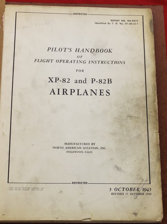 A group from LaGrange, GA flew in to look at the XP-82 project in February. While they were there, one of the men, James Mackey, contributed an original Twin Mustang Flight Manual that had the serial number of Tom’s XP-82 penciled in on the first page. Mackey told Tom that he acquired the manual from a fellow who was stationed at NACA Lewis in Cleveland, Ohio where the XP-82 was based during flight trials. What a find!