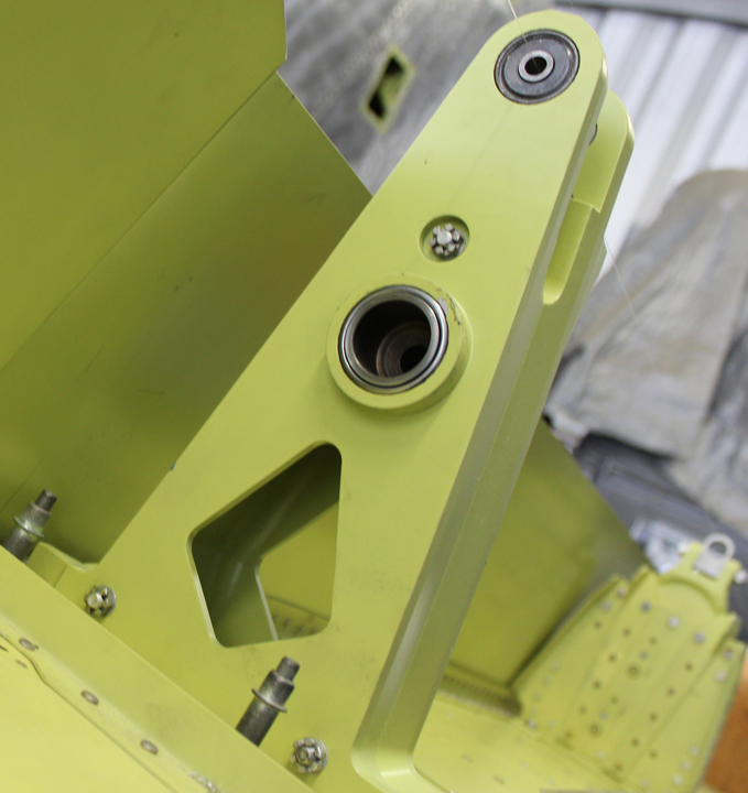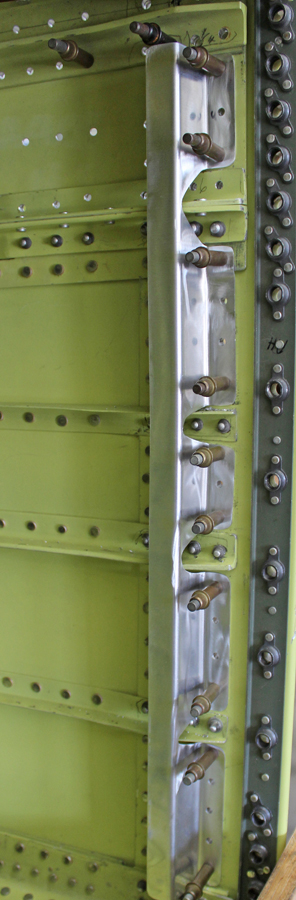 The new inner and center aileron attach hinge point fittings are presently being installed on both wings.