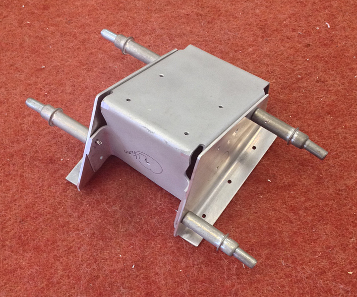 One of Tom’s men completed the aileron trim gear box mounted on the left aft spar. It’s a very complex little structure with all kinds of bends and angles designed in it.