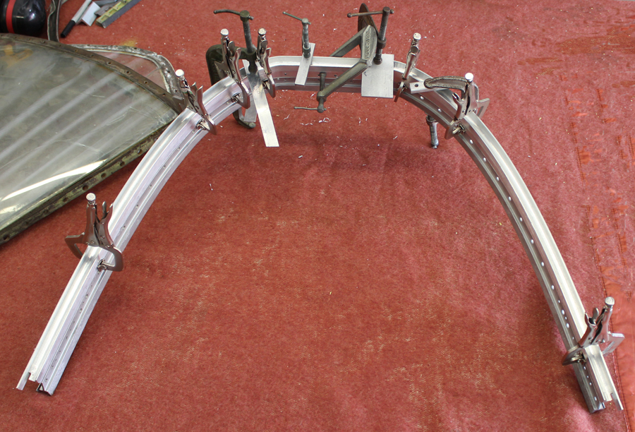 The team is currently assembling both windshield frames and their new bows. The have already finished installing the glass into one of the two canopy frames. The second canopy frame requires the installation of a little more internal skin structure and the new canopy bow before it can receive its glass.