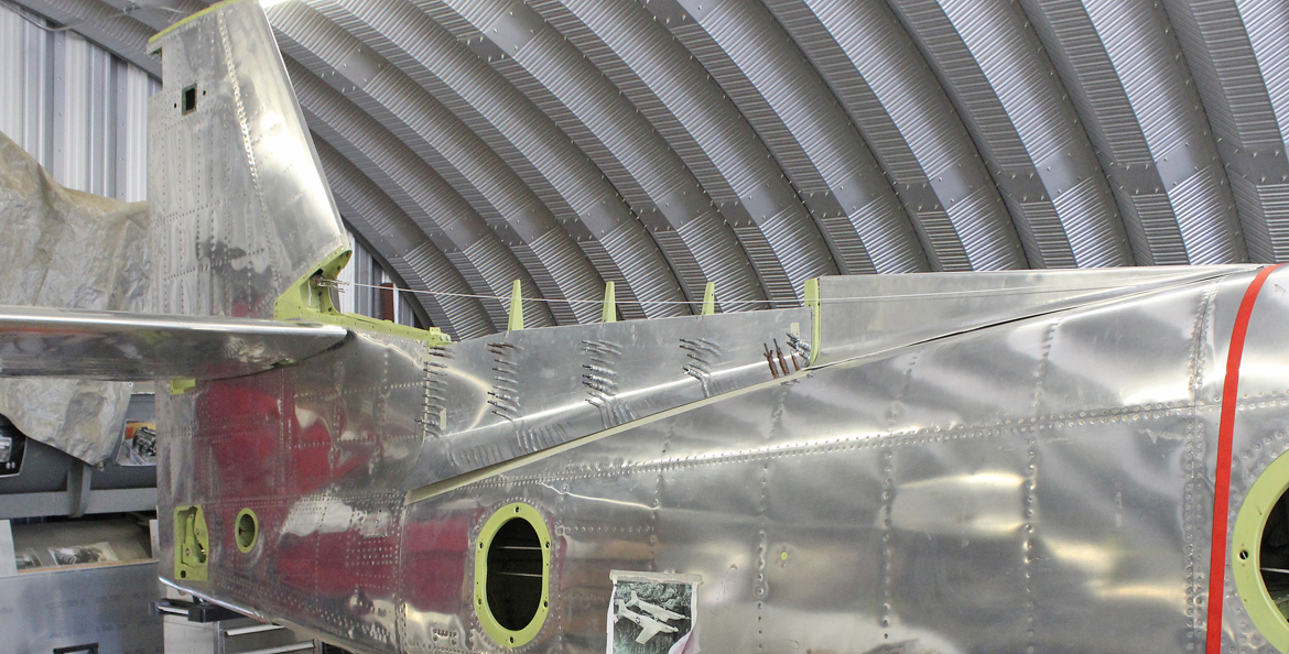 Part of the team has completed riveting all of the little hard-to-get-to places on both aft fuselages. They are now concentrating on completing both dorsal fins.