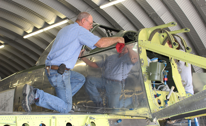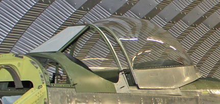 Both canopies are now permanently fit and attached. The canopy jettison systems are fully adjusted so that all three releases on each canopy release simultaneously. Both windshield frames and glare shields are now trimmed and permanently fitted, and await the four windshield side glasses. A second team is also attaching the fairings that fit underneath the aft section of both canopies. These fairings seal the canopies to the fuselages as the canopies roll forward.