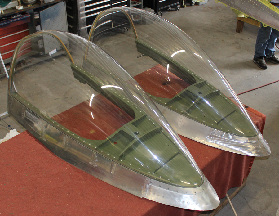 Both canopies are now totally finished, and all of the canopy trucks are completed and ready to be installed. The two glare shields (pilot and, copilot) and armor center windshield panels are also now complete and just awaiting the forming of the side glasses.
