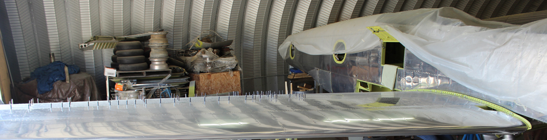 Every top and bottom skin on the left-hand wing is now completed with all of the dimpling, counter-sinking and edge fitting. Also close to completion are the left-hand leading edge and the four top wing skins for the left-hand wing which are being riveted this week.