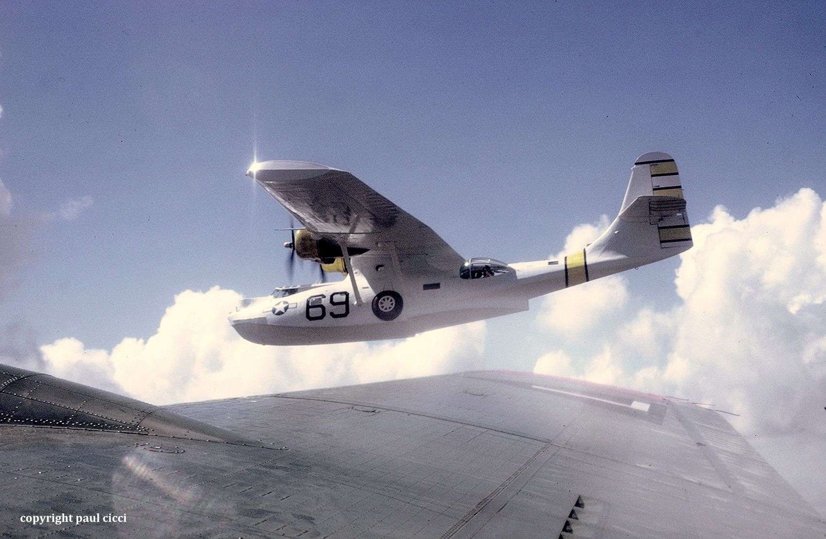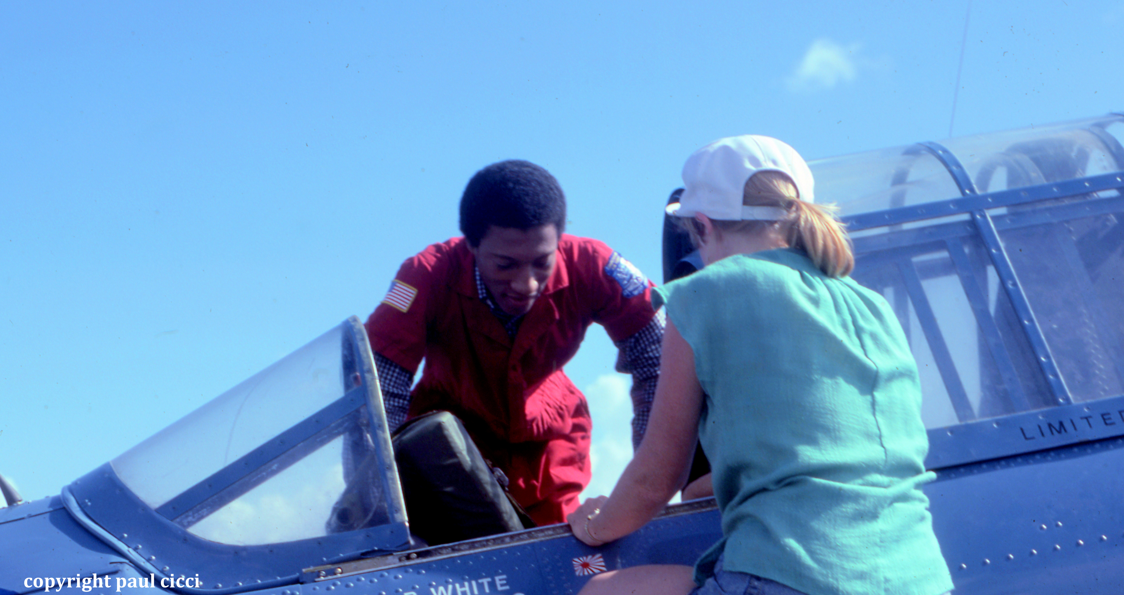 NBC TV’s weekly show “Real People” sent Byron Allen to film a segment on the Tuskegee Airmen . The CAF brought their B-17 “Texas Raiders” down from the Gulf Coast Wing as well as a visiting PBY Catalina for the segment. Byron got the ride of a lifetime in the CAF SBD Dauntless dive bomber. I got the ride of my lifetime flying in the B-17 “Texas Raiders” while in formation with the PBY Catalina, a “Tora” T-6 Zero, and Byron Allen in the SBD-5 Dauntless dive bomber.