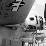 After “FIFI” returned to Rebel Field, she was put through a thorough engine run inspection before going into the hangar for maintenance. A large crew of people started working on “FIFI” and we prepared number 2 engine for removal. The massive Wright R-3350-57 engine was going to be replaced with an engine that was overhauled and still in its original, pressurized can. While inspecting “FIFI” some corrosion was found under the vertical fin and it was decided to remove the rudder and fin to treat the corrosion. Corrosion was a concern since the aircraft were based so close to the Gulf of Mexico.