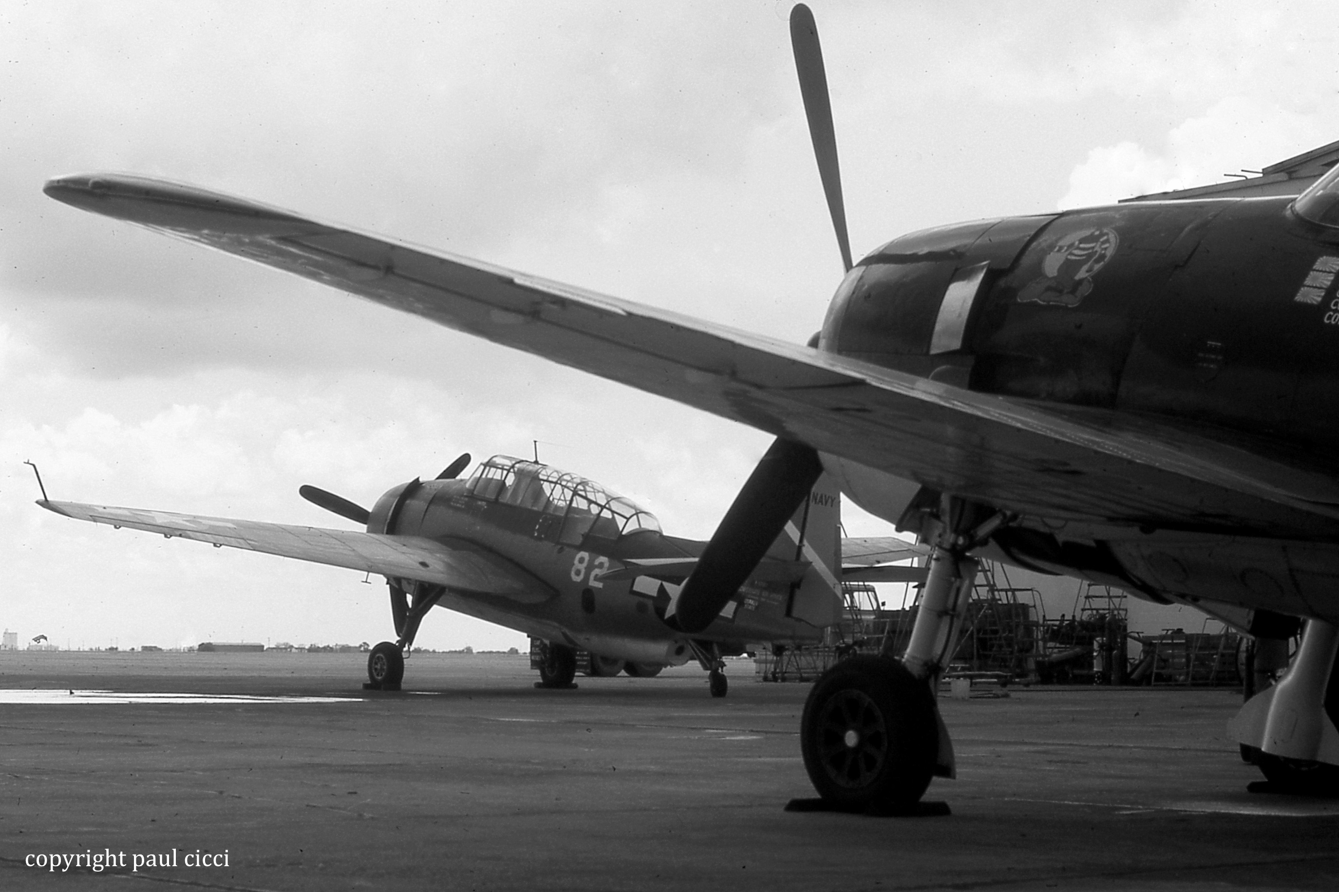 Towards the end of the summer of 1980, a hurricane formed and moved across the Gulf of Mexico heading close to southern Texas. Hurricane Allen would go on record as being the fifth strongest hurricane ever recorded. We would go on record as the most active CAF base ever, I’m sure, as we were instructed to pre-flight all aircraft that crews could be gathered for to get them out of south Texas. It was an “all hands on deck” endeavor to pre-flight so many aircraft and then figure out how to stack the remaining aircraft in the hangars. The activity on the flight line could only be compared to what must have gone on during WWII to get aircraft ready for a mission. One exciting thing for me was being told to sit in the right seat of the P-82 Twin Mustang during the engine run-up. After the P-82 and all other aircraft were evacuated, we had to move every piece of ground support equipment inside the hangars. “FIFI” was not flown away, but was kept inside the big hangar. This hangar was build during WWII and was designed to withstand hurricane force winds. When “FIFI” was placed in the hangar, smaller aircraft were placed under her wings like a mother bird protecting her young. After we did all we could, we punched out and left Rebel Field and Harlingen. I got my family safely home and with me were rolls of film and memories of working with the greatest people you can imagine. We were all bound together in our dedication to preserve our aviation heritage as testimony to the “Greatest Generation” the built, maintained and flew the best aircraft of WWII. Forty years later, I’m glad I am able to share my photos of the summer of 1980 at Rebel Field in Harlingen, Texas.