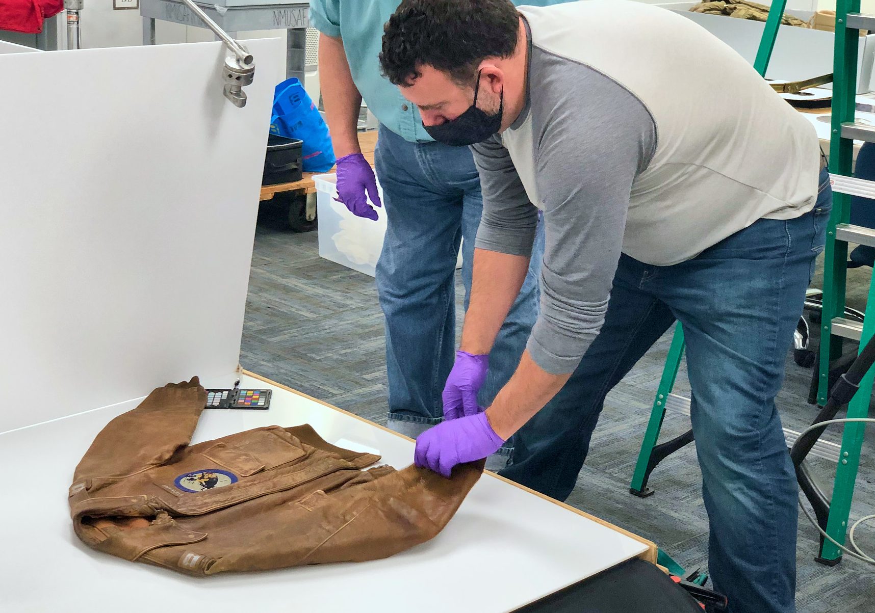 Photographing the Hollywood star and squadron commander's flight jacket is part of…