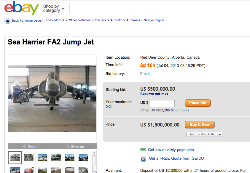 Time is Running Out to Buy Yourself a Harrier Jump Jet!