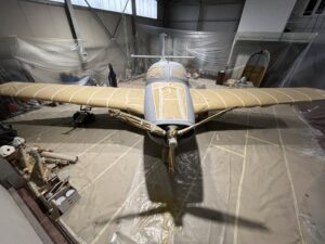 In addition, an expert painter and representative of Lechler Colours, an Italian paint manufacturer, offered to help the Captain with the painting scheme and process. The choice for the paint scheme was actually very simple as there was only one Piaggio P.149 that served with the Italian Air Force — serial number MM559. This Piaggio was used by the Italian military attaché in Bonn in the early ‘60s, so the choice obviously went to this aircraft. Captain Gusso also told us: “I started looking for paint stripping products since I absolutely didn’t want to disassemble the wings or the flight controls. In particular, I was looking for a gel product that could also be applied on the lower surfaces. For the next three months, I spent most of my time in overalls, glasses, masks, rubber gloves, and with a spatula and rolls of paper. This first phase was followed by the orbital sander, then a brass brush to clean the old paint around the rivets. I spent about 8-10 hours each day of continuous work until the plane slowly changed its appearance … finally showing its original primer layer.”