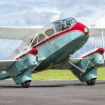 Like most Dragon Rapides, this aircraft rolled off de Havilland’s production line during WWII as a DH.89B Dominie, the type’s military variant. Built to a Royal Air Force contract as HG663, the Royal New Zealand Air Force took her on strength as NZ528in November, 1943; she served in communications and navigation training roles. Demobbed in 1946, the aircraft underwent conversion into a Dragon Rapide for civilian service with the New Zealand National Airways Corporation (NAC), registered as ZK-AKU. NAC nicknamed the aircraft Tawaka and flew it on short-haul passenger routes until 1962.