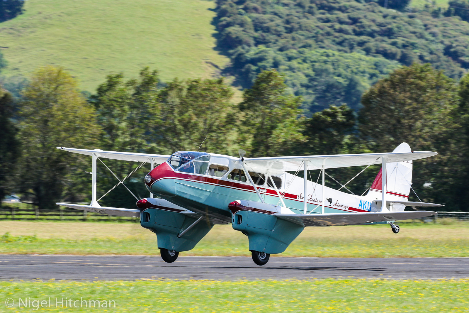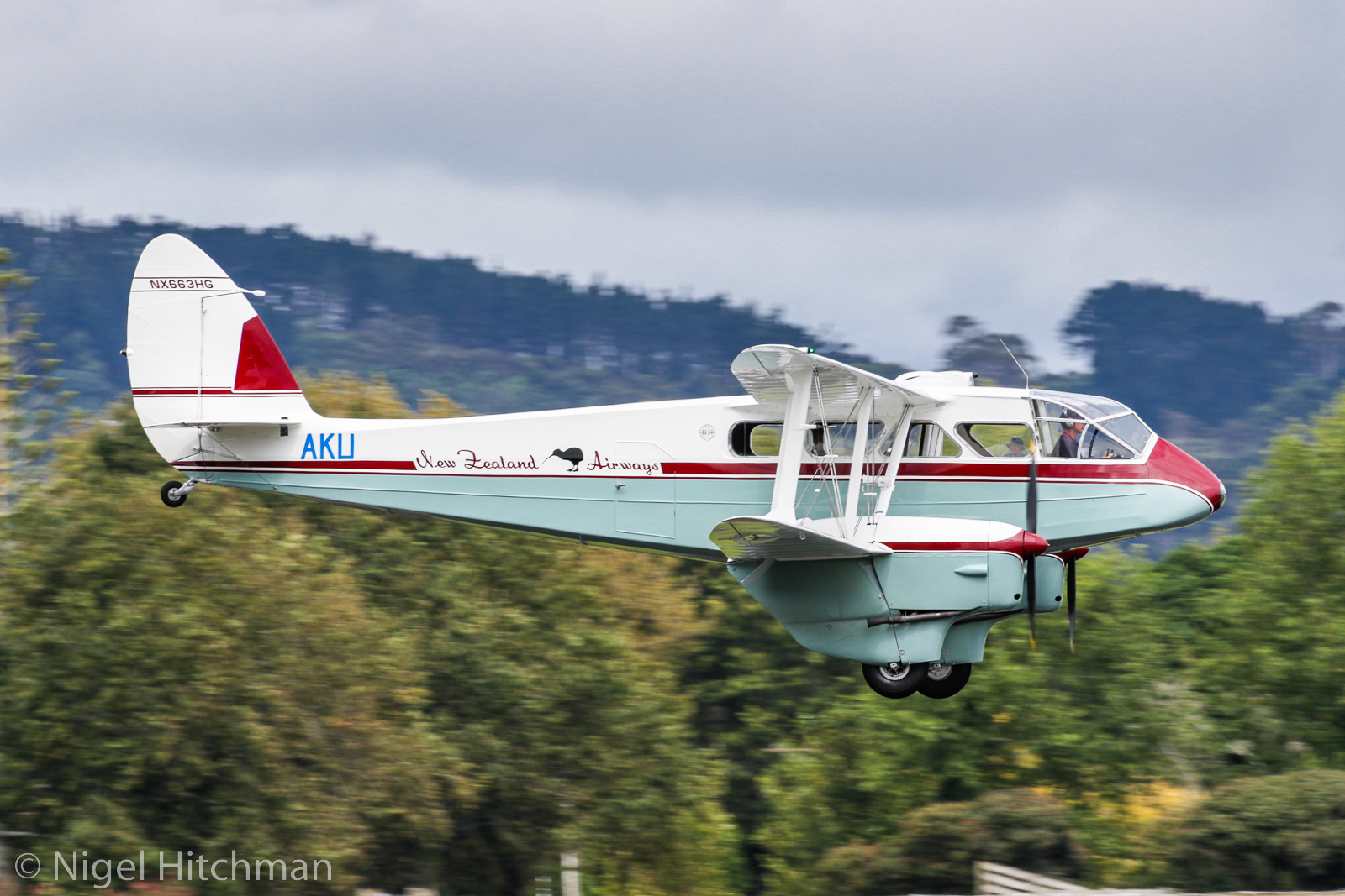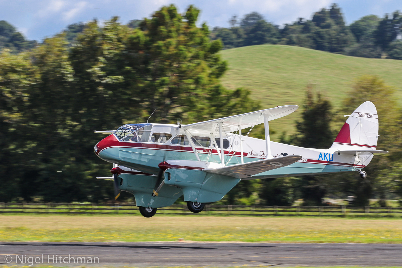 Dragon Rapide ZK-AKU about to land. (photo by Nigel Hitchman)
