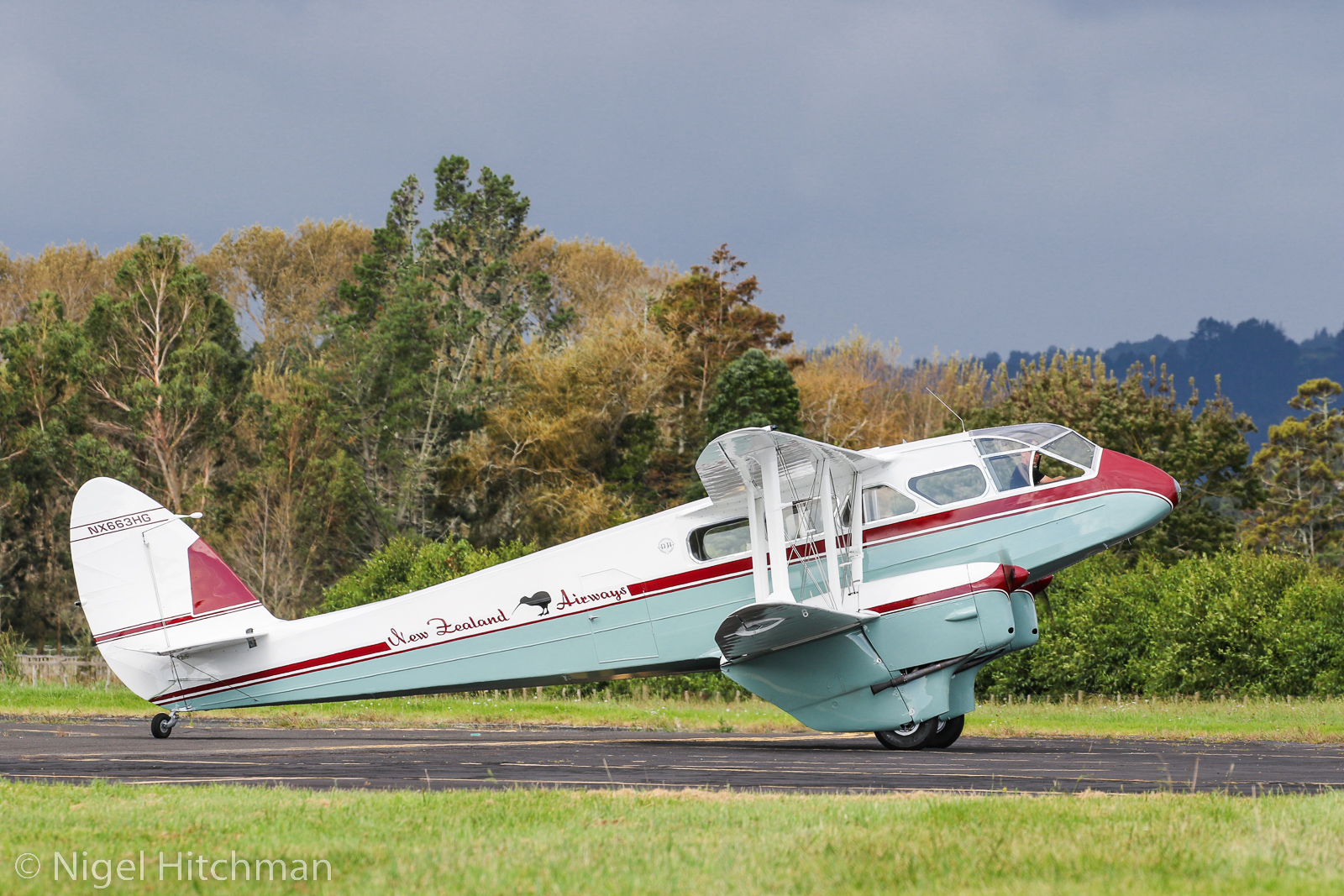 Dragon Rapide ZK-AKU on her first post-restoration flight following a 3-year rebuild at Avspecs Ltd. in Ardmore, New Zealand. (photo by Nigel Hitchman)