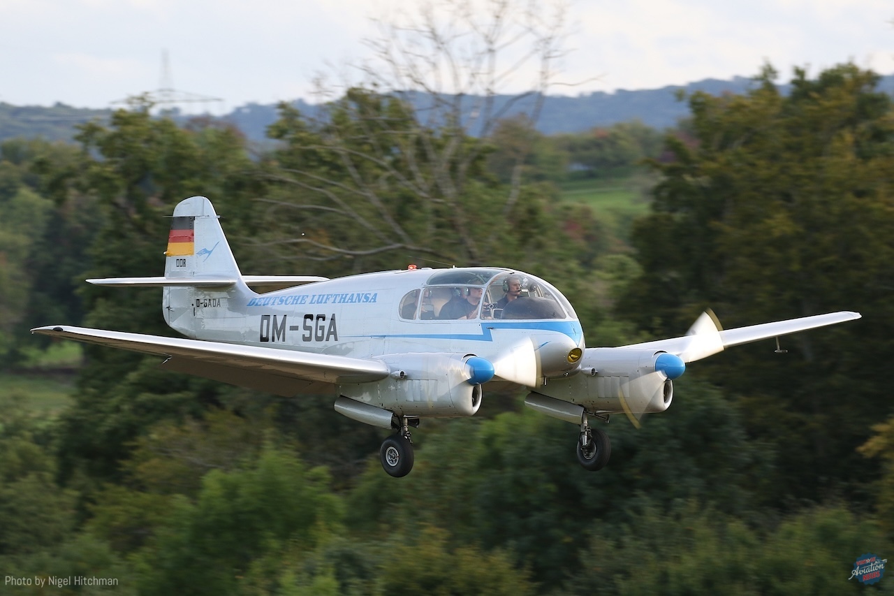 The LTU-Classics DH.104 Dove D-INKA was a welcome surprise, recently restored to flying condition and looking immaculate. Originally built for the RAF in 1949 as WB531, it served until the early 1980s before passing into civilian ownership in Holland as G-BLRN. After storage, it was purchased by a German group and restored in 2005 in LTU colours to commemorate 50 years of the airline.